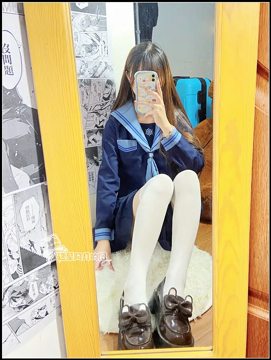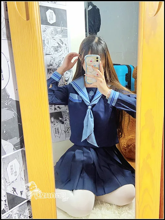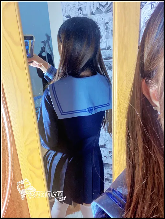 镜子前的水手服少女,真的有种把平凡日常点亮的魔法,一身深蓝配浅蓝领结,干净又俏皮,上班下课之后随手一穿,心情都跟着“回春”了。