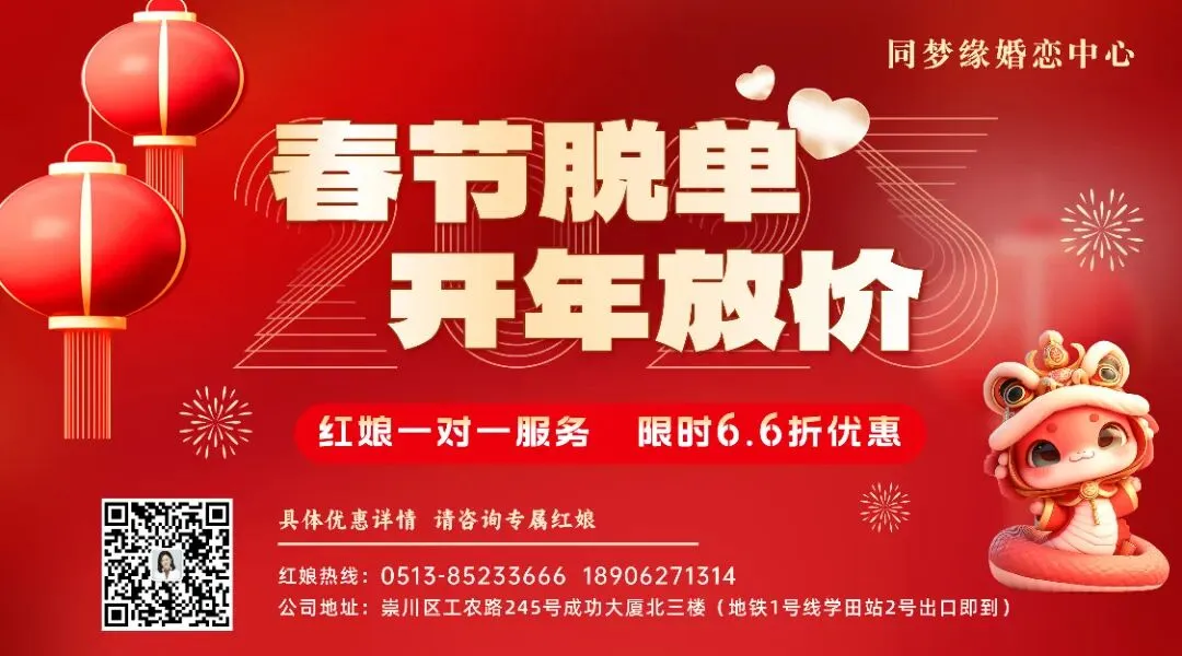 为感谢大家长久以来的支持,春节期间,同梦缘助力脱单,开年放价!红娘一对一服务,限时6.6折优惠!需要脱单的小伙伴抓紧到店咨询哦!