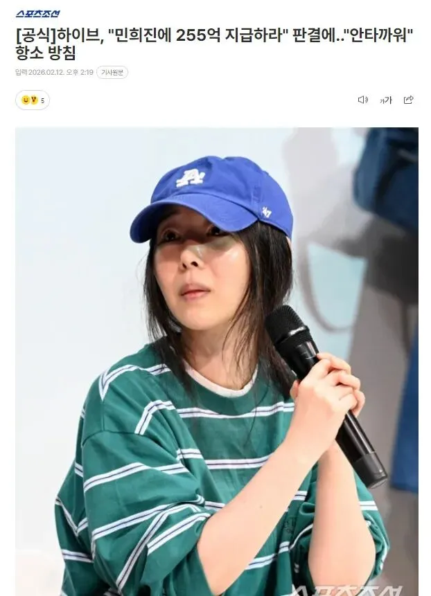 HYBE被判“向闵熙珍支付255亿韩元”,研究判决书后将上诉