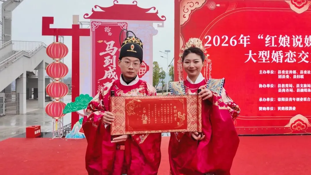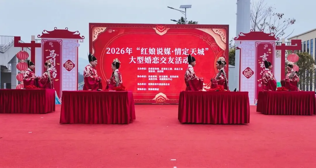 情定天城,良缘牵手;移风易俗,新风入心。2月9日,由县委宣传部、县委社工部、县总工会、团县委、县妇联联合主办的2026年“红娘说媒·情定天城”大型婚恋交友活动在崇阳县体育场广场温馨启幕。
