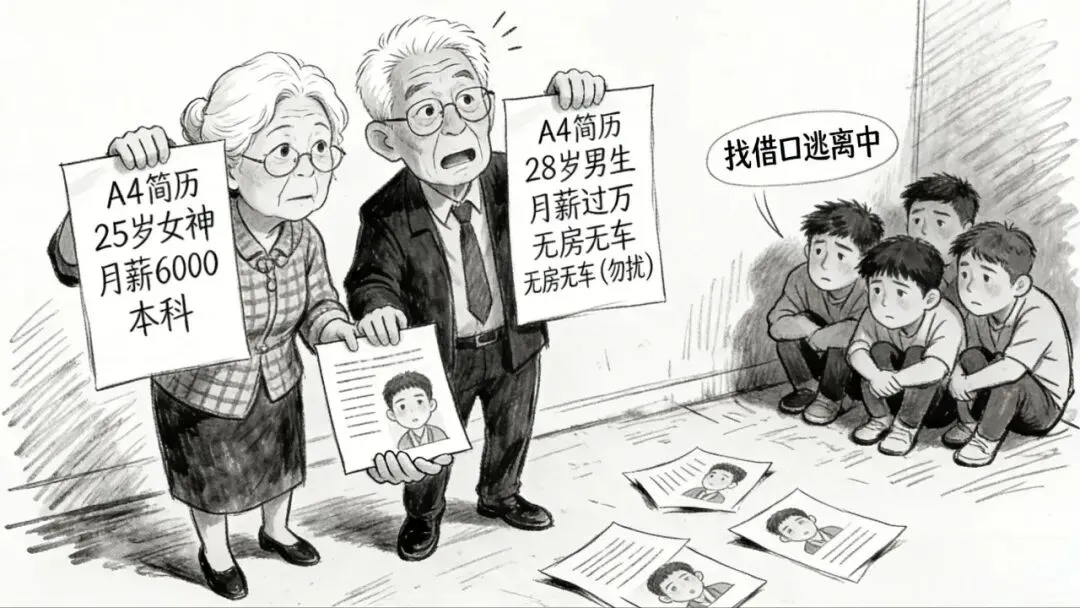 我在现场蹲了半小时,满眼都是头发花白的父母,手里举着自家孩子的资料,从70后剩男剩女,到刚成年的00后,跨度大到离谱。凑过去瞅了瞅那些择偶要求,直接给我看懵了:25岁女生,月薪6000、身高160、本科,就敢标上“女神择偶,非诚勿扰”;而旁边一个28岁男生,五官周正、身高175、月薪过万,就因为没全款买房买车,资料被扔在一边,连被家长问一句的资格都没有。