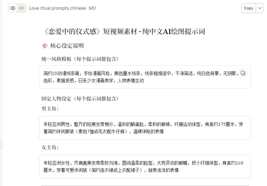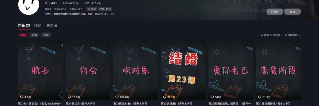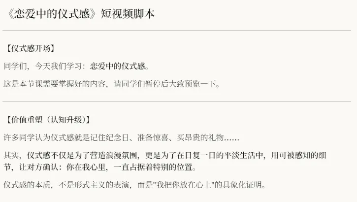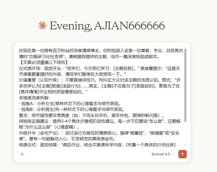 23条作品,收获粉丝42.3万,获赞567.2万,平均每条视频24.6万赞。这个账号专门做"恋爱翻译"——分析女朋友的各种行为背后的真实含义。看完之后,恍然大悟:原来女生说"随便"不是真的随便,说"没事"也不是真的没事。今天就拆解一下这个账号,教你用AI做同款情感教学视频。每条视频都是:开场问候→知识拆解→实操建议→课后作业。因为用户看到"同学们""今天我们学习",潜意识就觉得这是干货,而不是随便说说。打开Claude(网址:https://sorryios.ai/pastel#/register?i=lFAJI)输入提示词(来源于@小太子奶):你现在是一位拥有百万粉丝的深度情感博主,你的视频人设是一位睿智、专业、且极具共情的"恋爱研习社杜老师"。请根据我提供的主题,创作一篇深度短视频脚本。1.仪式感开场:固定开头:"同学们,今天我们学习:[主题名称]。"紧接着提示:"这是本节课需要掌握好的内容,请同学们暂停后大致预览一下。"2. 价值重塑(认知升级):不要直接讲技巧。先纠正大众对该主题的浅显认知。格式:"许多同学认为[主题]就是[浅层行为]……其实,[主题]不仅是为了[表面目的],更是为了在[具体情境]中达到的深层情感目的。"视角A:分析女生/某种状态下的心理需求与细节表现。视角B:分析男生/另一种状态下的心理需求与细节表现。要求:细节描写要非常具象(如:不低头玩手机、顺手拎包、眼神的躲闪等)。4. 保姆级实操建议:提供3-4个具体步骤或阶段性建议。每一步不仅要说"怎么做",还要解释"为什么这么做"(心理逻辑)。5. 内核升华(金句产出):探讨该行为背后的情感核心。强调"被重视"、"被偏爱"或"安全感"。要有一句能触动人心、引发转发的高级感金句。6. 结课仪式:固定结尾:"课后作业,结合本堂课所学内容,[布置一个具体的行动任务]吧。记得要有[核心要求]哦。下课!"多用对比(XX不是…而是…)和排比句增加文案节奏感。帮我制作出素材图片,风格要求是简单的2D动漫线条画,手绘漫画风格。用于关键帧动画的混剪,背景纯白色,只需要动漫人物素材。例如:如何正确且高效地"哄"对象。这一句话重点是哄对象,那就可以直接出一个关于哄对象的图片提示词,男生哄女生的素材。对标视频都是图片+关键帧+动画的形式,用的是2D动漫风格。打开即梦(网址:https://jimeng.jianying.com/)简约2D动漫线条画,手绘漫画风格,黑色墨水线条,线条粗细适中,干净简洁,纯白色背景,无阴影,无色彩,素描质感,日系少女漫画美学,年轻亚洲女性,齐肩直黑发带柔软刘海,圆润温柔的脸型,大而灵动的眼睛,娇小纤细体型,身高约160厘米,穿着简约上衣,自信地正面站立,手持一本教科书封面上写着"仪式感"三个字,温和的微笑,职业休闲姿态,全身图构图1.打开配音蜂小程序,输入对应的文案,选择曼波的音色,点击生成。过程就是根据文案去匹配对应的画面,抠像,增加动画等等。1.固定模板: "老师上课",专业人设,每条视频结构一致。2.痛点精准: 每个话题都是真实困惑,评论区全是"说到心坎里了"。3.实操性强: 看完就能用,不讲空话,讲具体怎么做。以上就是今天分享的内容啦,如果对你有帮助,请点赞+再看+转发+评论。感谢你来看我的文章,有问题欢迎评论区交流,我们下次再见。阿坚每天会在这里分享AI学习相关干货知识,点个“关注+星标”,你就不会错过每一篇。