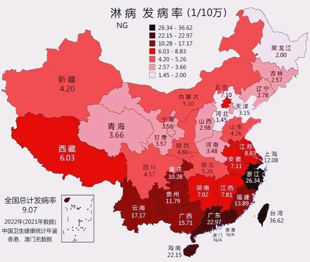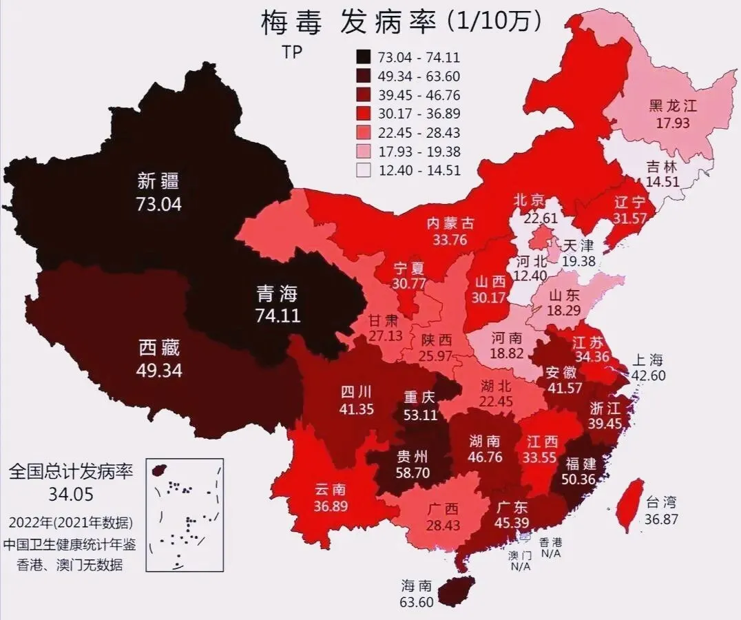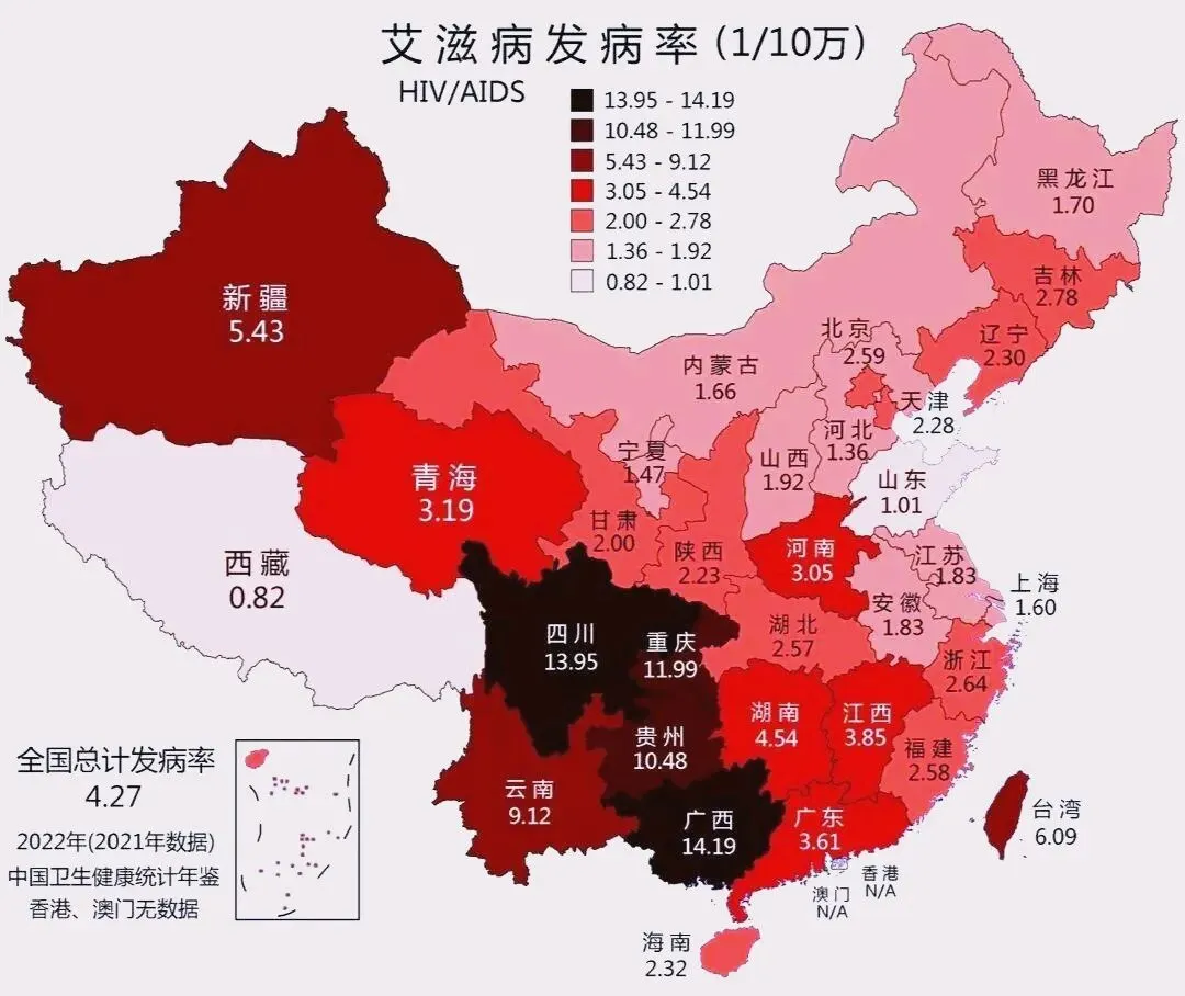 中国是艾滋大国,性病传染分布,看2022年卫生部发布的统计图