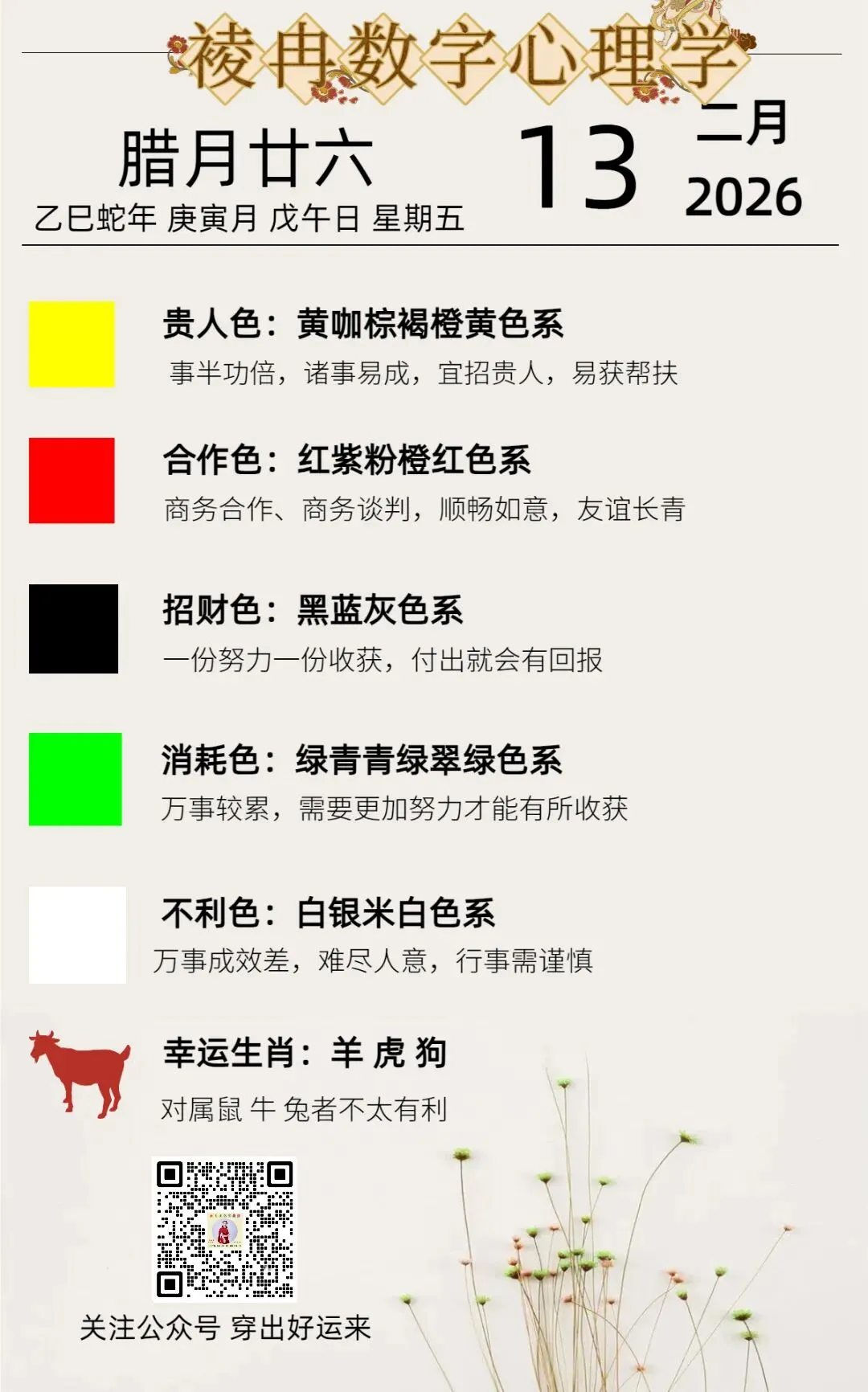 小运播报:2026年2月13日,星期五,农历腊月廿六 (丙午年庚寅月戊午日),法定工作日。