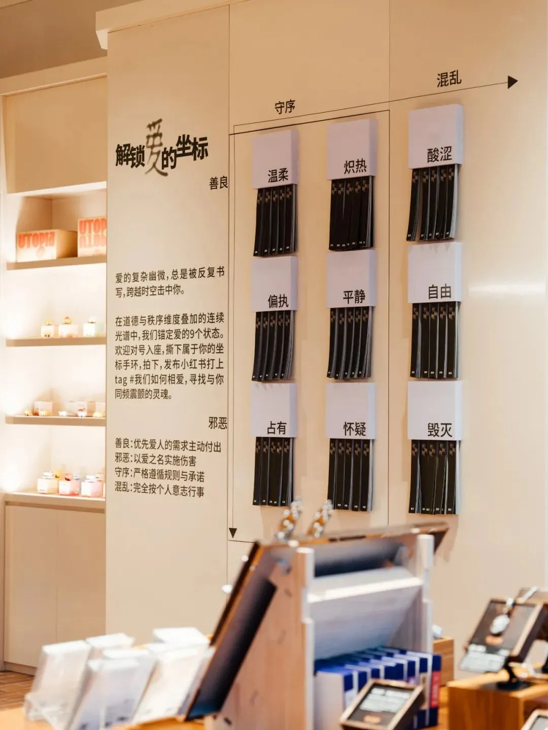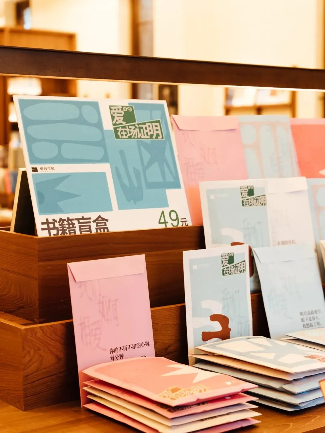 我们摆了爱的主题书桌,还有炽热、平静、偏执、自由四种爱的盲盒。