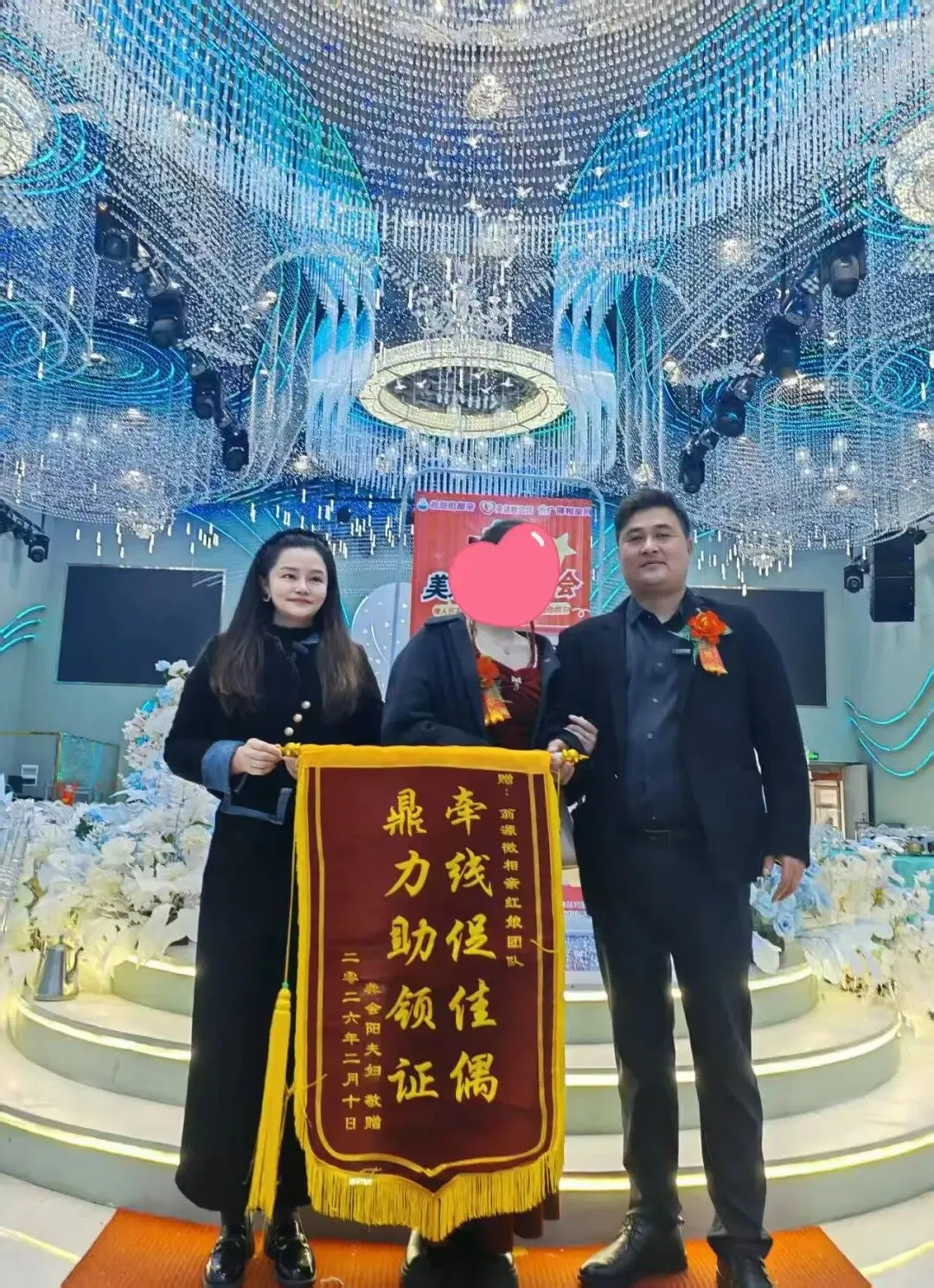 2026年2月10日,翁源的婚礼现场星光璀璨,一对新人手捧绣着