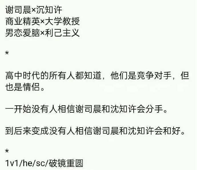 1v1|利己主义大学教授女x恋爱脑商业精英男| 男强女强破镜重圆文!男女主高中时相恋,女主为了前程出国两人就此分开,多年后重逢两人开始极限拉扯,男主是个深情恋爱脑,女主从利己主义到学会接纳依赖!