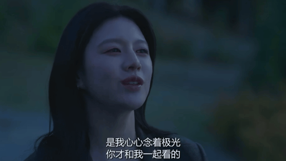 女主说,希望世界各地都会出现极光,听着有点“疯”,但这样,男主就能常常想到一起看极光的自己了。