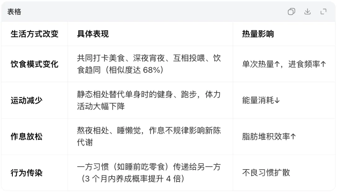 5.西班牙肥胖症研究学会. (2024). 伴侣关系与体重变化的医学调查报告. 微博