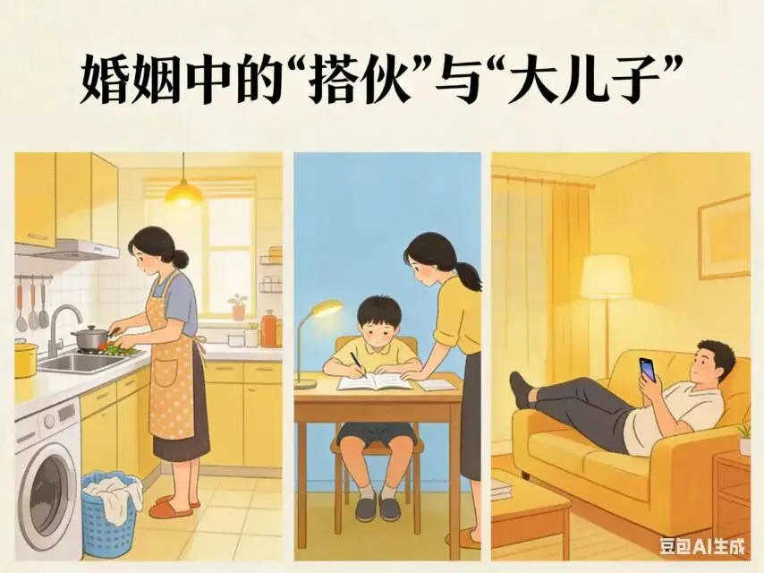 多少婚姻里,妻子下班回家继续上班——做饭、洗衣、辅导作业,而丈夫往沙发上一躺刷手机,美其名曰“休息”。所谓的“搭伙过日子”,最后往往变成女人给自己找了个“大儿子”。