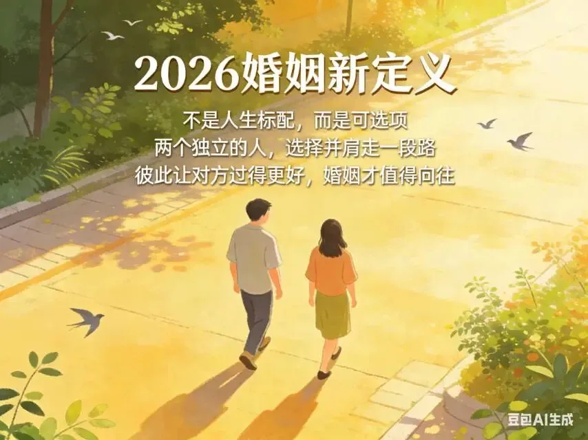 2026年,婚姻正在回归它本该有的样子:它不是人生标配,而是可选项;不是谁依附谁,而是两个独立的人,选择并肩走一段路。只有当彼此都能让对方过得更好,婚姻才值得向往。