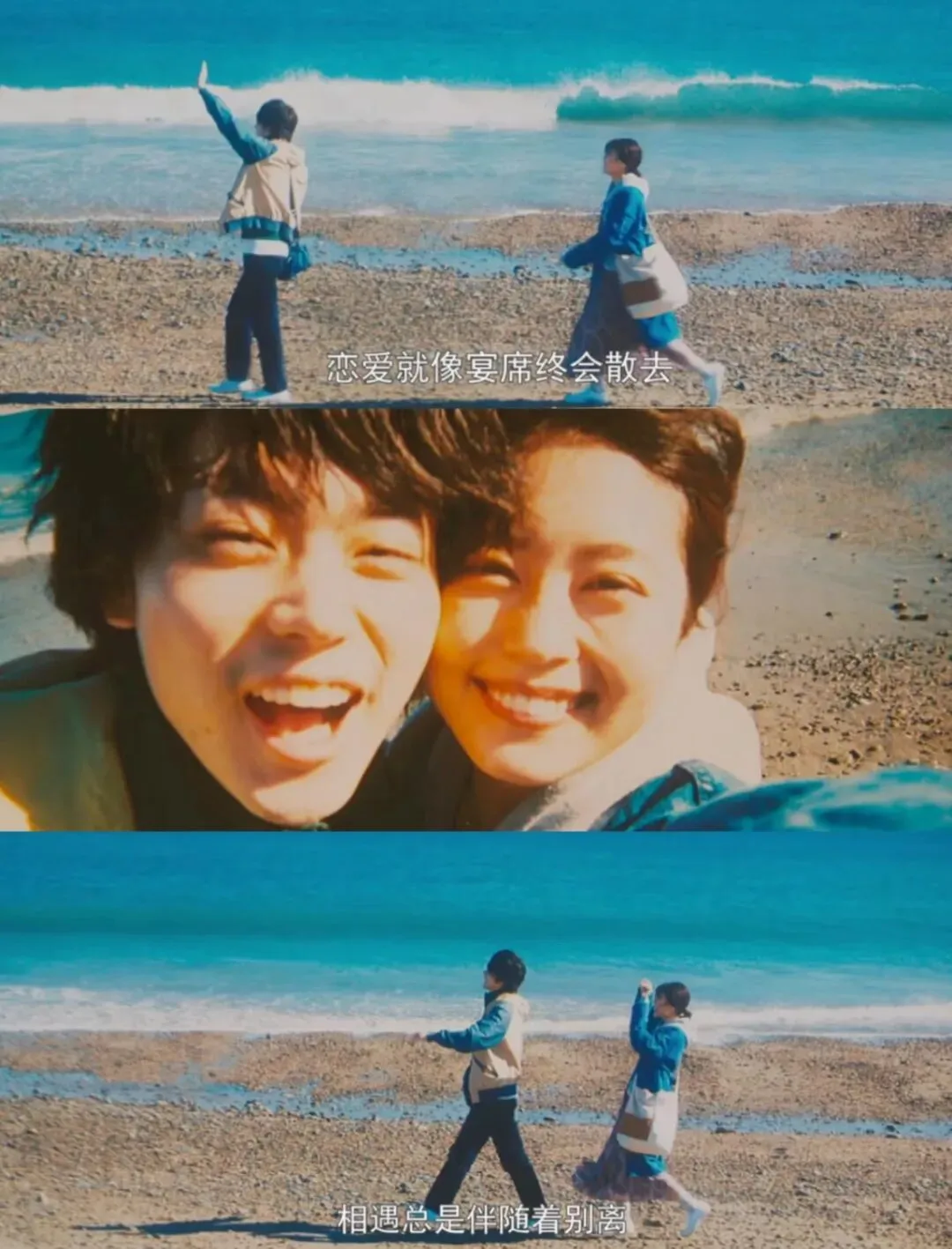 1. “或许不会有人一直在恋爱,但一直会有人在恋爱”,这是我从上边片段中,直接生发而出的感受。缘分总会将两个有磁场的人们联结在一起,而强烈的共鸣、被看见与被爱的感受在一段健康的恋爱关系当中似乎又是“唾手可得”的;不可否认的是,一段真挚的恋爱是弥足珍贵的。但同时,我也相当钦佩电影中男女主能够果决且坚定地分开,即使两人的羁绊已经是相当深刻的。