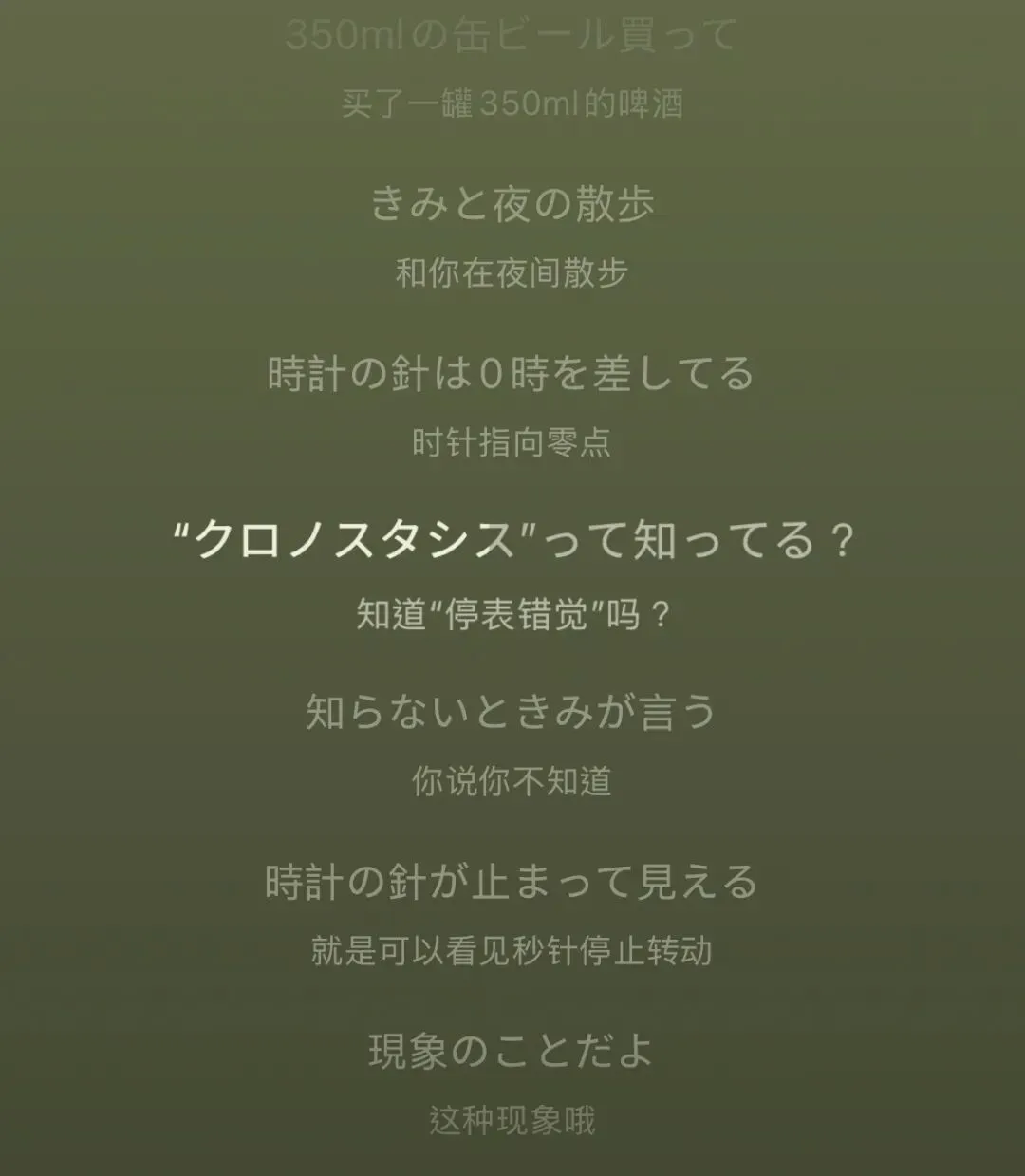歌词来源:クロノスタシス(时停错觉)——きのこ帝国