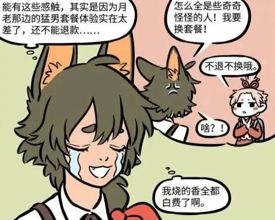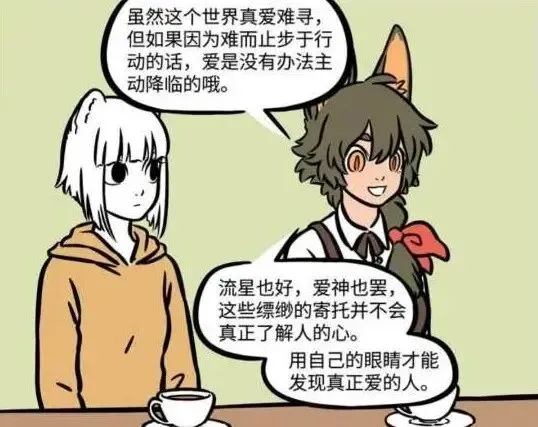 在非人哉漫画中,瓦陶陶到杨戬的咖啡店工作最重要的原因是为了找对象,在瓦陶陶的观念里,咖啡店遇到的帅哥机率大,说不准还可以来一场完美的邂逅,进行一场甜甜的恋爱,可惜过去很久瓦陶陶都没有在咖啡店里遇到帅哥,却在某一天和哮天夜里畅谈的时候,喜欢上了哮天,虽然哮天并不知情,但在瓦陶陶心里早就把哮天当准男朋友了,直到某一天夜里下起了流星雨,趁此机会瓦陶陶向流星雨许愿,希望流星雨保佑她的恋爱顺利,没想到意外吸引来了丘比特,丘比特是爱神,因为瓦陶陶的愿望所以出现在了她的窗前,没想到还没等丘比特和瓦陶陶说话,丘比特就被月老一脚踢走了,这也难怪,毕竟月老和丘比特是竞争关系。看见被月老踢走的丘比特,瓦陶陶就很生气了,毕竟丘比特走了就没人保佑她的愿望成真了,殊不知月老此次前来就为了给瓦陶陶介绍对象的,月老手里有各种单身人士的资料,什么高矮胖瘦,什么头发疏密,只要是顾客提出的要求,月老都保证帮顾客找到真爱,不过月老也知道瓦陶陶心里还是最喜欢哮天,所以再给了瓦陶陶一系列单身人士的资料,瓦陶陶迟迟没有抉择的时候,就打算放弃帮瓦陶陶介绍其他对象,没想到瓦陶陶最后竟然真的选了其中一个肌肉猛男套餐。月老对此非常震惊,想不到就这样阴差阳错的卖出了一单,毕竟肌肉猛男套餐现在五折,过了这个村就没这个店了,月老也只好将此套餐卖给瓦陶陶,不过瓦陶陶也不亏,毕竟这个肌肉猛男套餐里面全是各种肌肉猛男,应有尽有,这么多人总有看对眼的一个。但是没想到瓦陶陶很快就放弃了,甚至还明白了一些道理,就是美妙的恋爱还是要靠自己去努力争取的,即使这个世界上存在月老和爱神,但是真爱还是要靠自己的双眼才能发现,此番言论得到九月的赞赏,九月想不到瓦陶陶年纪虽然比自己小,但却比她成熟很多,经此一事,瓦陶陶也算是学到了很多。但是九月没想到瓦陶陶能得出如此深刻的道理完全是吃了亏才得来的,瓦陶陶选的肌肉猛男套餐虽然表面华丽,但实际上里面全是些奇奇怪怪的人,并不讨瓦陶陶的喜欢,瓦陶陶找月老要求换套餐,却被月老告知套餐不退不换,瓦陶陶没有办法只能接受这个结果。看来自己痛彻心扉的经历一遍,有些道理才能明白过来,经过这件事,瓦陶陶算是明白了真爱也是要靠自己主动争取的,光是待在家里许愿是没有用的,关键还是要靠自己的行动。对此,你有什么看法呢,欢迎留言评论,我们下期再见。