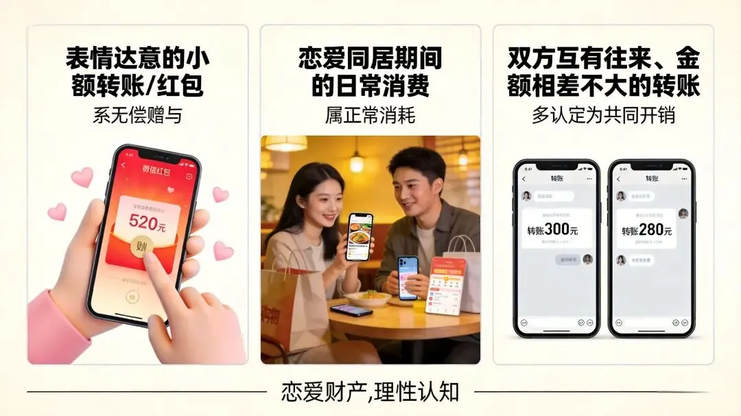 2. 恋爱同居期间的日常消费(吃饭、购物、话费等),属正常消耗;