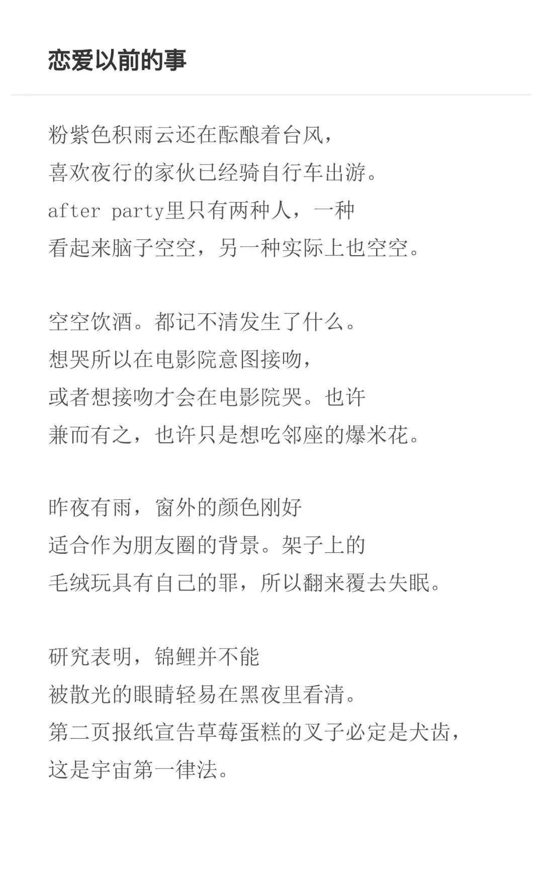 我的诗歌内容已经退化到只剩下撒娇的功用。