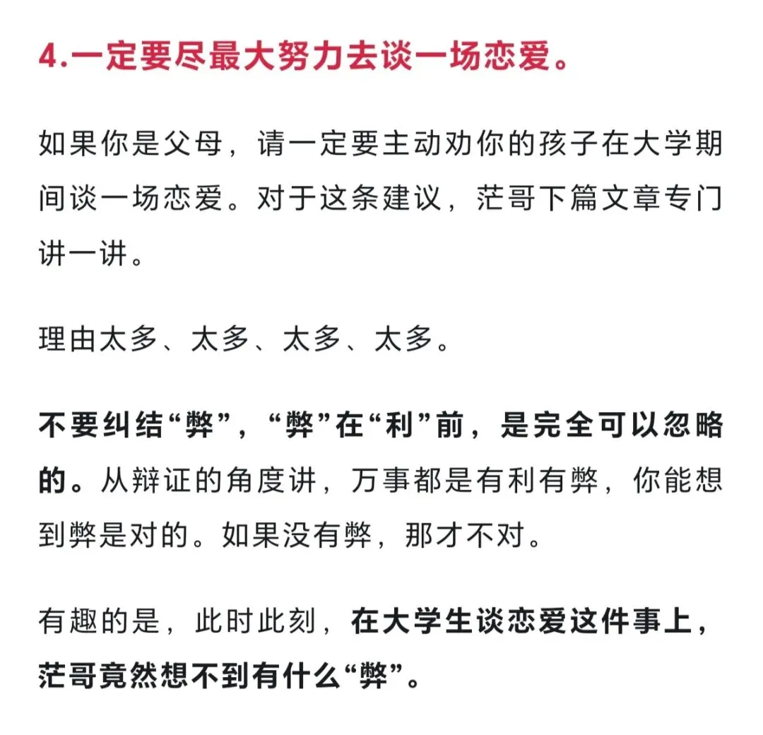 需要强调的是,茫哥上边说的“谈恋爱”,不是为了恋爱而恋爱、浪费大把时间、花费大量金钱,最后还耽误了学业或其他有意义的事情。