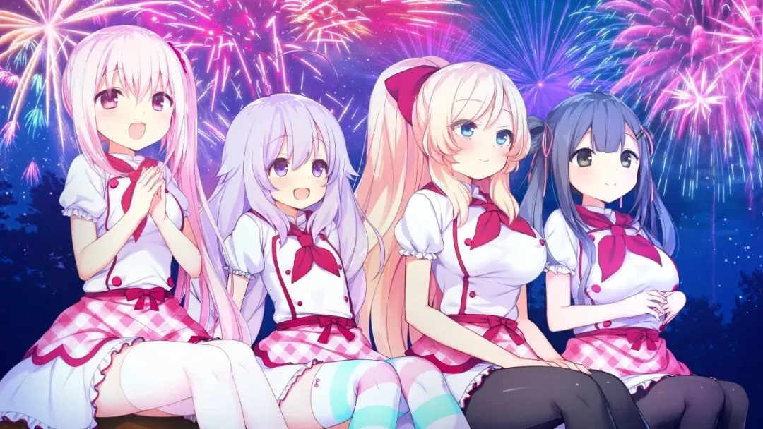 之所以推荐本作,是因为我在五年前就推过这部作品,当时推了两条线,体感非常好。恋爱感非常足,很甜蜜;各种场景也比较有梗,很有趣;人物设计也是别出心裁。图1:宣传图,人物从左到右是柚姬、美绘瑠、乃乃香、枫花我推的两条线是乃乃香线和美绘瑠线。乃乃香是我很喜欢的努力家+元气少女类型,和男主小时候见过面,本作正女主。乃乃香线的恋爱发展过程就像拿铁拉花一样,轻吮一口,清甜感自然地融化在心中。我觉得她就像是我心目中的初恋白月光一样,令我想起酸甜的青春校园回忆。结局是和男主结婚成为糕点师,我也特别喜欢这种确定性的缔结永远在一起的誓约的结局,每条个人线结尾的两人幸福生活的CG真的很棒。比起乃乃香,大家可能更熟悉美绘瑠,不少人可能见过她的表情包。美绘瑠是个喜欢偷懒的天才,自身拥有极大天赋,但是喜欢偷懒,经常摸鱼逃课,不过一旦认真起来便能做出相当了不得的成果。和乃乃香线相比,这条线多了一种恋爱中的少女的纠结感,由于美绘瑠不甚直率,所以坠入爱河的时候无法直接发觉这种焦躁感、心痒感的本质是什么,并且对男主有种若即若离的表现,靠近了会感觉很害羞,但远离了又会觉得寂寞。整体给人呈现的是如同小动物一般的可爱。音乐担当是我最喜欢的水月陵老师,她来了,她来了,她扛着她标志性的清亮的钢琴声来了!BGM是一如既往的日常风格,若要具体描述就是一个风和日丽的午后,端着一杯咖啡坐在桌前随性地做着自己的事的感觉。水月陵,重逢的青梅竹马,白月光,或许会让人想起被恋彼女支配的恐惧,但是不要担心,本作是专门发糖的。原画担当是米白粕老师,这位老师的风格可以用“团子”来形容,即每个美少女都像团子一样软乎乎的、轻飘飘的。不过枫花和柚姬人物立绘身体比例有些不协调,尤其是头胸比例。我比较有印象的场景首先是共通线的女子派对,大家会讨论恋爱话题,女孩子会根据对你的好感度做出不同反应(大概是进线判断标准之一);其次是烟花大会,乃乃香个人线的标志从这里开始,她在大家看烟花时会偷偷看你,然后你们会目光交汇,这一幕真的蛮甜的。而美绘瑠个人线的标志就不在这里,可见设计还是比较用心的。总而言之,这是一部相当不错的萌系作品,想得到甜蜜恋爱体验的人一定要试着玩一下。由于推的历史比较久远所以有些细节可能记不太清了,有错误还请大家指正,不过我也打算这几天重温一下本作,顺带把没推的枫花、柚姬线完成。