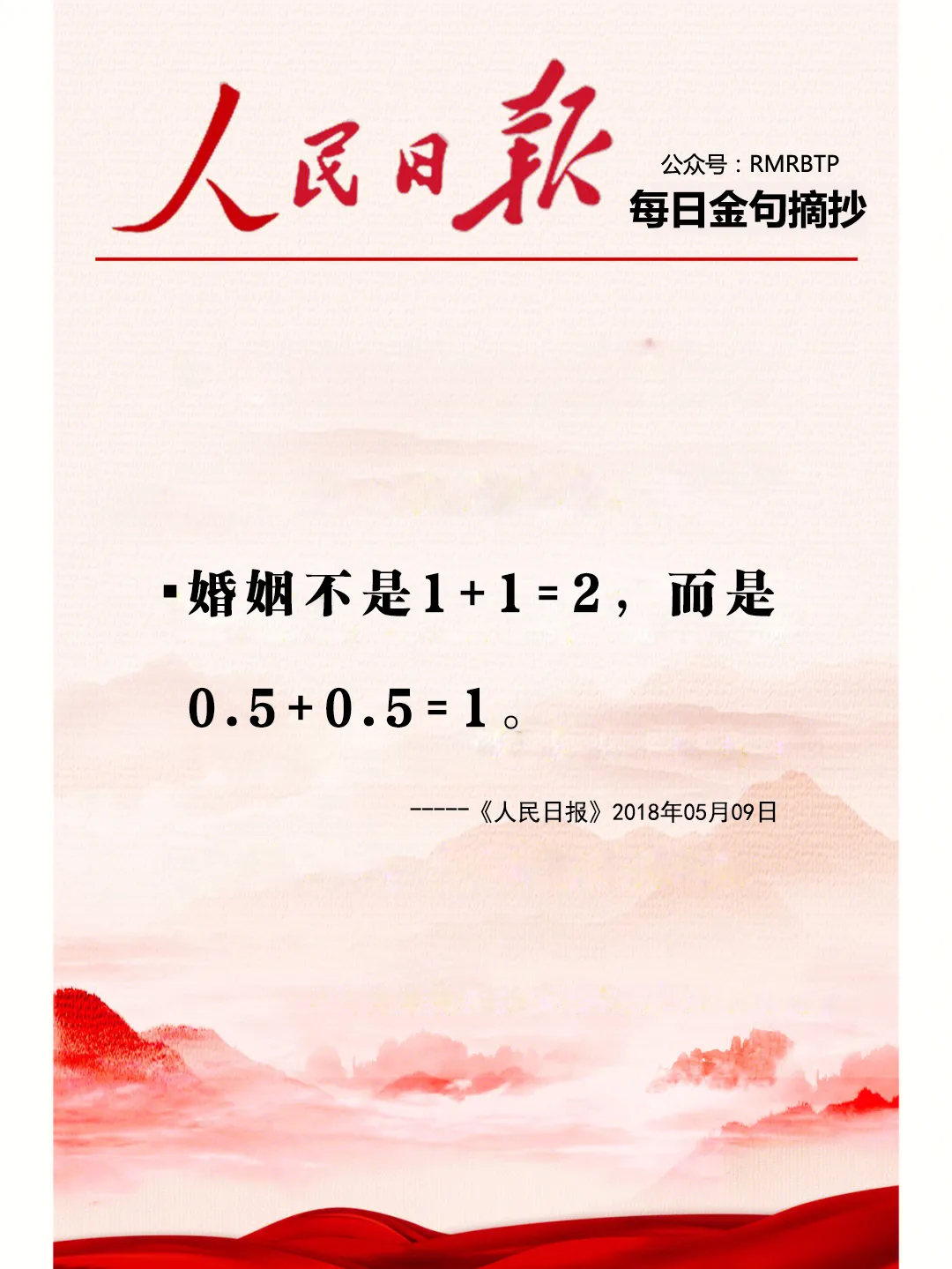 婚姻不是1+1=2,而是0.5+0.5=1。