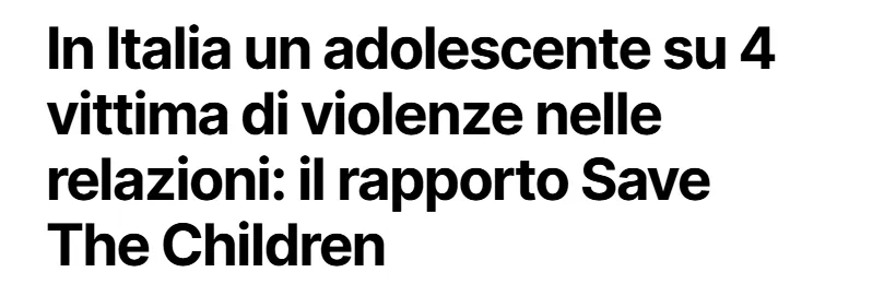 在意大利,每四个青少年中,就有一人在恋爱关系中,曾被伴侣以暴力行为(如扇耳光、拳打、推搡、扔东西)吓到过;超过三分之一(36%)的人,被伴侣用喊叫、辱骂等暴力语言对待。