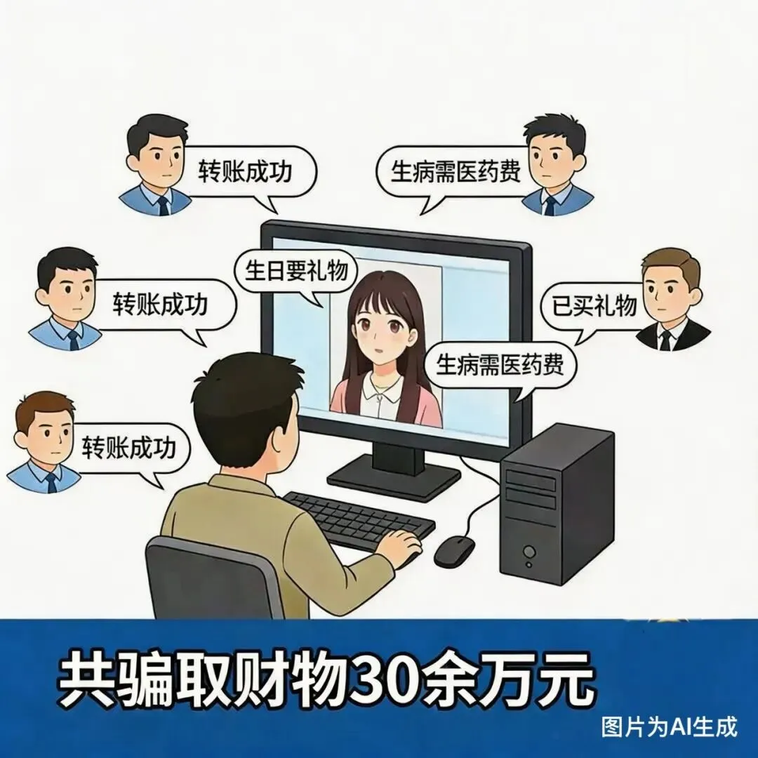 40岁男性嫌疑人杨某某,洞悉部分男性渴望陪伴的心理,在网络上实施“性别伪装”诈骗。他盗用年轻女性照片冒充自己,以女性化语言风格与陌生男性聊天,打造温柔体贴的人设。凭借虚假形象,杨某某同时与6 名男性网恋,取得信任后,以“生日要礼物”“生病需医药费”等理由,频繁要求对方转账、购物,共骗取财物30余万元。直至一名受害者察觉异常后报警,这场多人骗局才被揭穿。