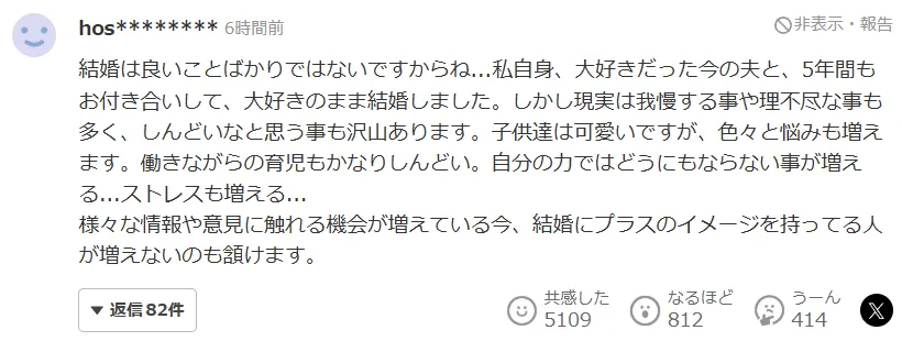 在如今这样一个能接触到各种信息、各种观点的时代,越来越多人对结婚抱有正面想象变少,其实也是可以理解的。