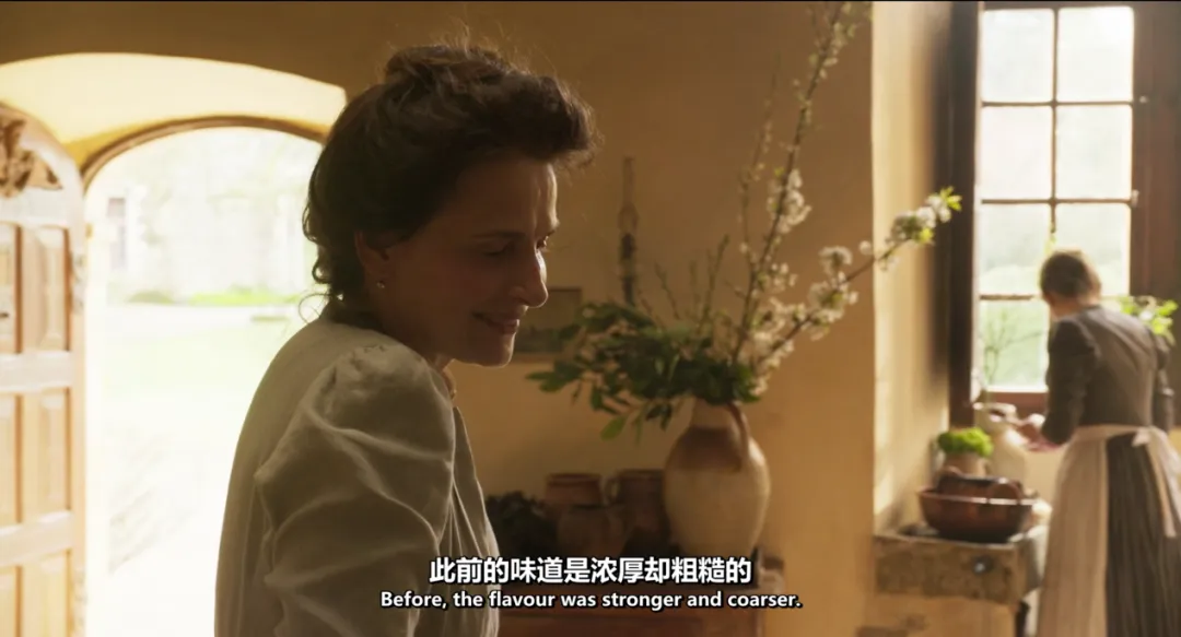 这部电影开始有点像《饮食男女》,但是场景,色彩有那么明媚,有20多分钟的烹饪场景,就像油画一般的画面,女主角是法国女神朱丽叶·比诺什出演。