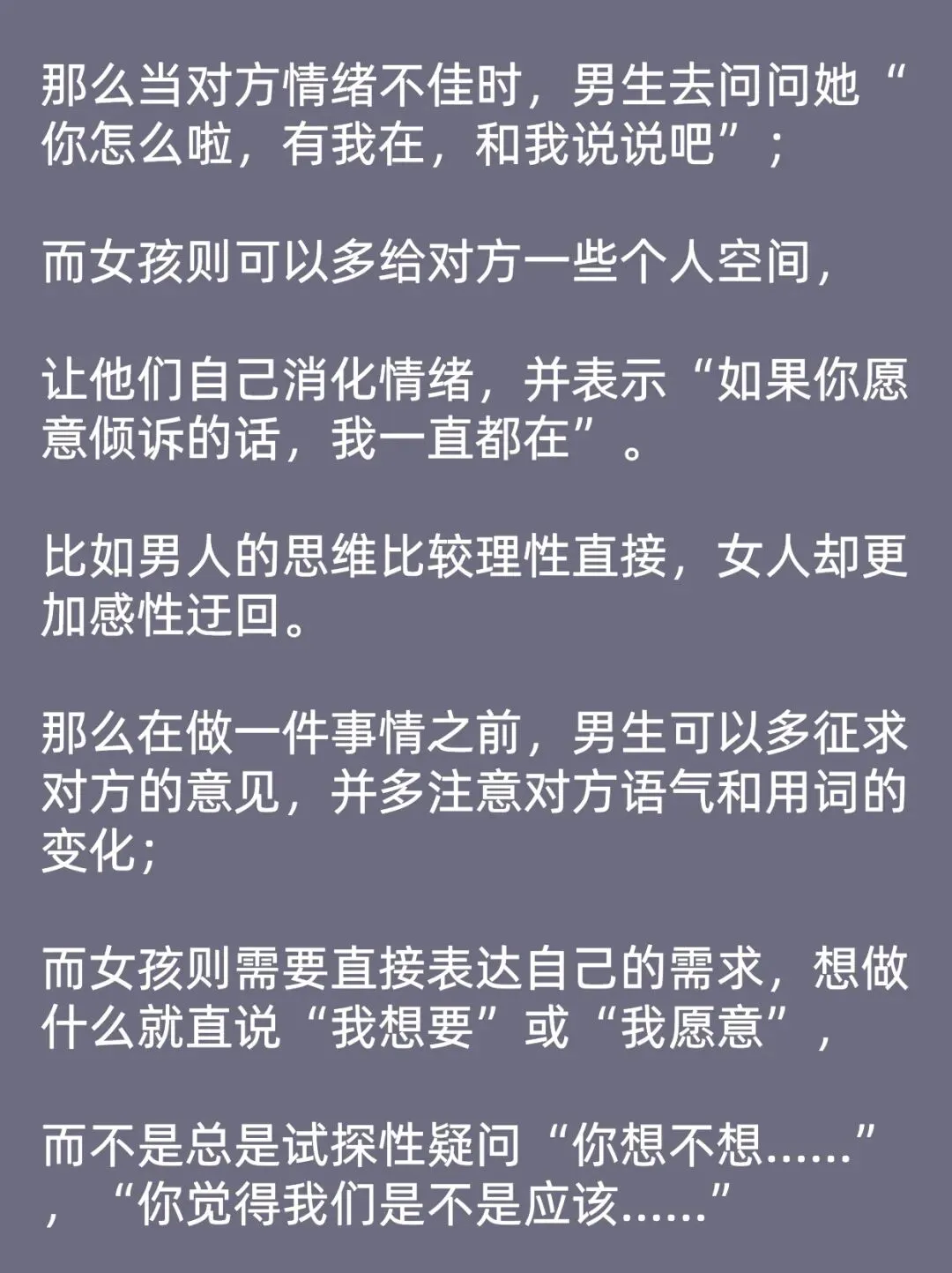 而女孩则需要直接表达自己的需求,想做什么就直说“我想要”或“我愿意”,