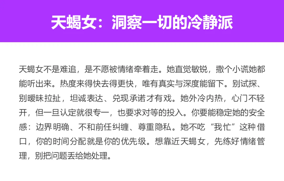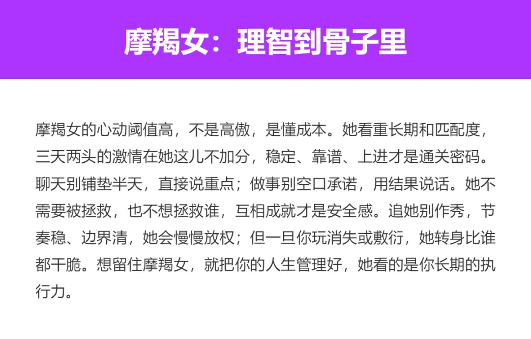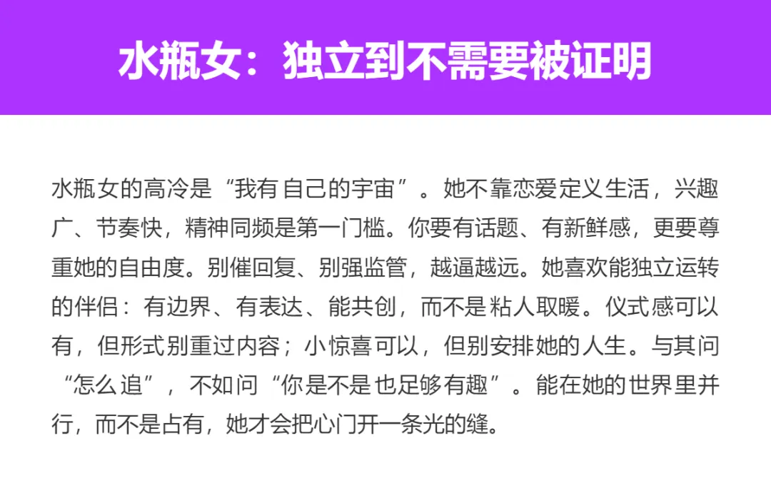 有人老问:“为啥她们这么难追?”说白了,人家不是冷,是清醒。现在感情里最稀缺的,不是心动,是自持。今天就聊聊那几位出了名的高冷星座女,外表拿捏,内心有数,绝不搞恋爱脑。她们不吃套路,不看戏码,只看稳定和价值感。你要是只会花言巧语,基本没戏;但你真诚靠谱、情绪稳定,自然能靠近。别把“慢热”“不好追”当标签,其实是边界和底线清清楚楚。喜欢你会给信号,但不会委屈自己。想拿下她们?别急,先把你的人和事过好,再谈感情。