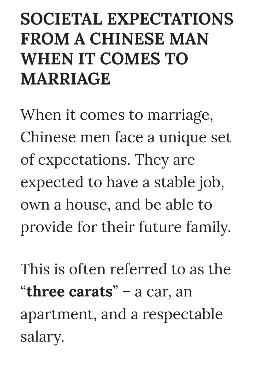 >中国文化:影响中国男的婚恋三大件(three carats)