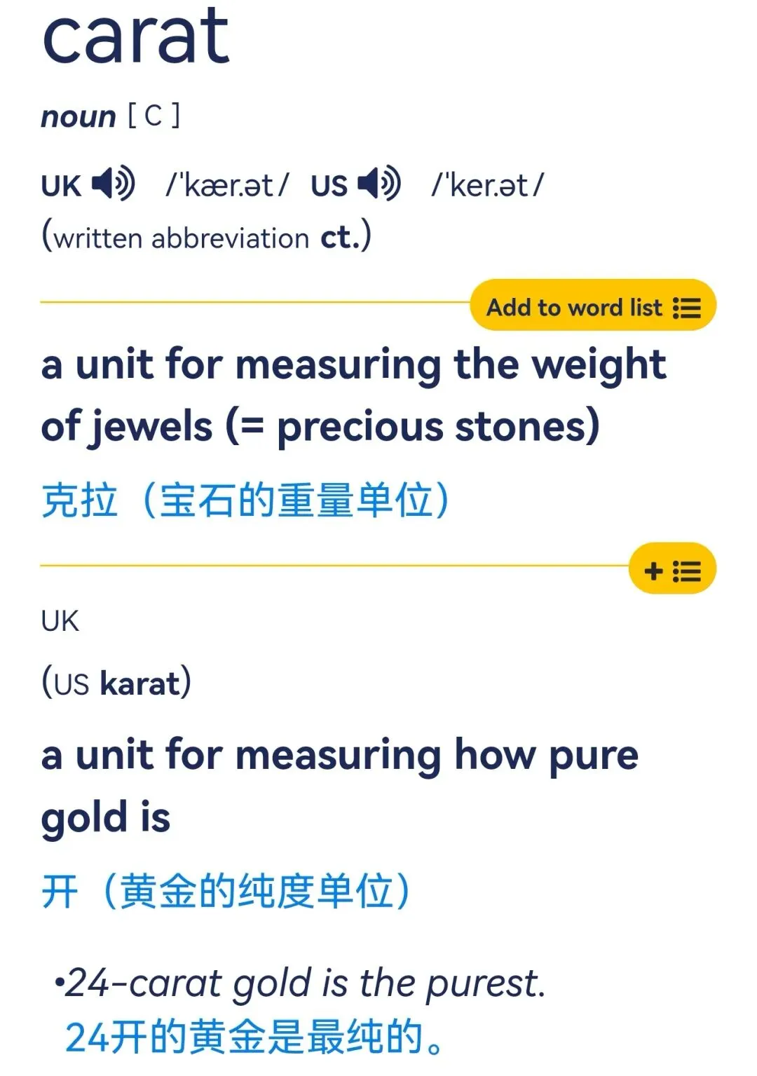 Carat(克拉)是衡量宝石(尤其是钻石)重量的单位。钻石象征婚姻和永恒,所以用“克拉”来代指