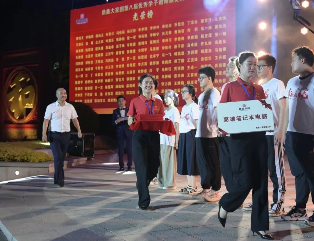 现场还举办了隆重的第八届“文化谢师”活动。该活动鼎鑫大家园已连续举办了七届,累计向鼎鑫大家园近千名优秀学子颁发奖学金或纪念品,助力学子外出求学、青春追梦。这次活动鼎鑫大家园为考入重点院校的学子隆重颁奖,鼓励他们报效祖国、感恩父母。诗朗诵《说谢,远远不够》表达了学子对恩师的感激之情。最后学生集体向恩师、父母行深躬大礼,将活动再次推向高潮。活动在歌伴舞《飞得更高》中圆满结束。