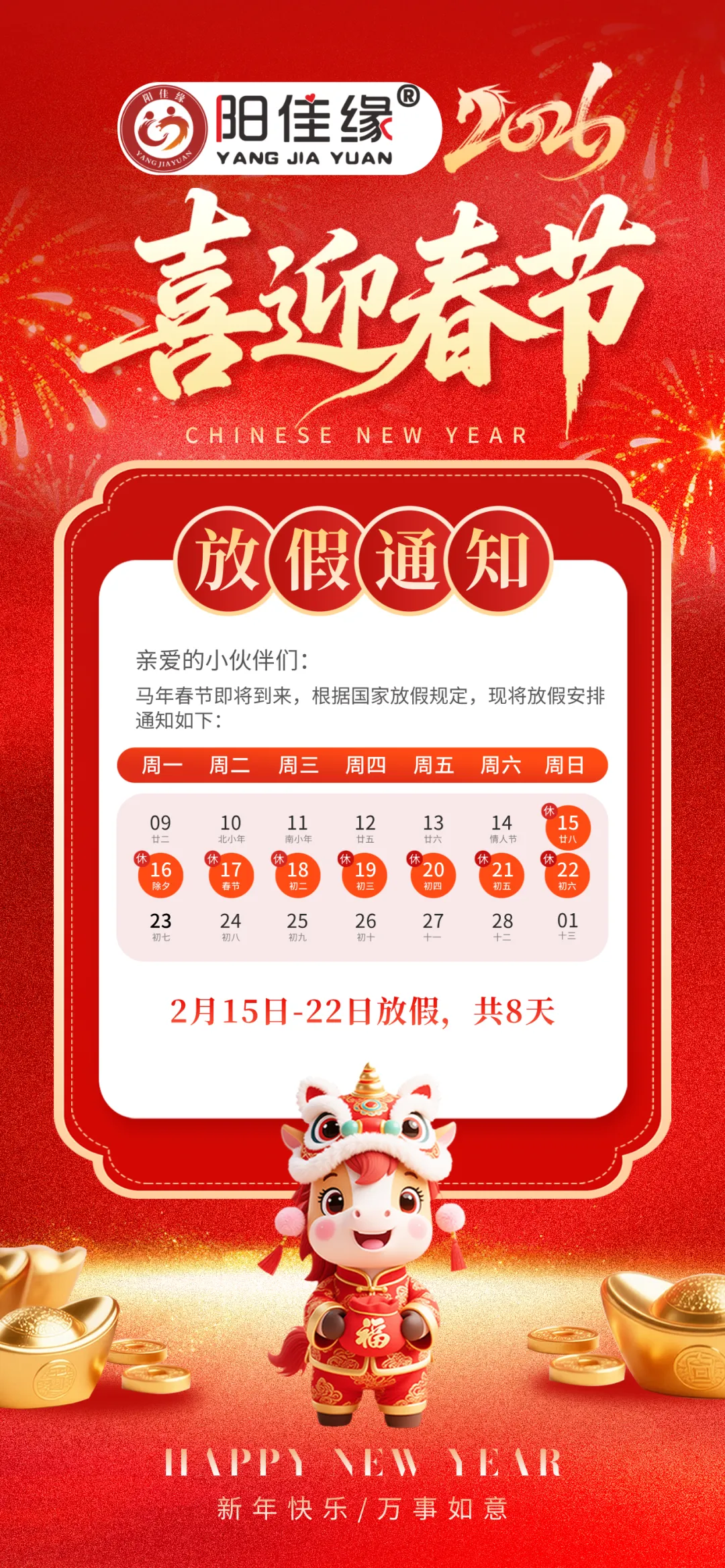 阳佳缘婚恋|2026春节放假通知 & 新春祝福