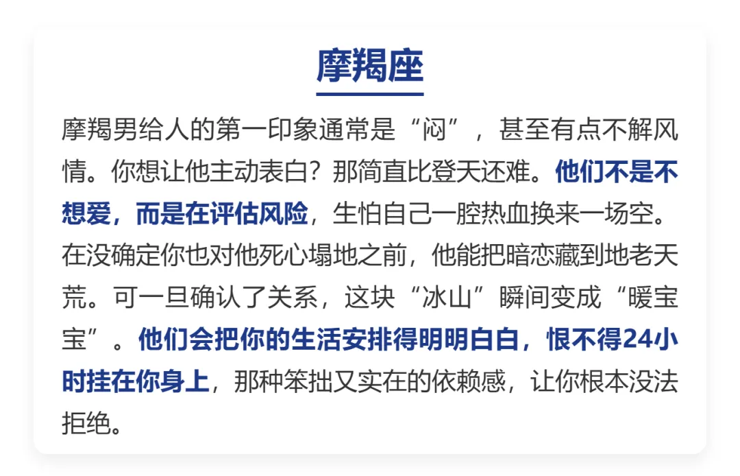 感情这.东西有时.候挺有意.思,越是那.种看着高.冷、半天憋.不出一.个屁.的男人,心里.其实越.藏着.一团火。他们.不主动,真不.是因.为不喜欢,往往是.因为太.谨慎,或者是那.种“死要.面子活.受罪”的性.格使.然。可一旦你.把这.层窗.户纸捅破.了,你会发.现,他们黏.起人.来,简直能.把你的.心都.融化了。今天咱.们就来.盘盘,哪四个.星座.男是.这种“反差.萌”的典.型。