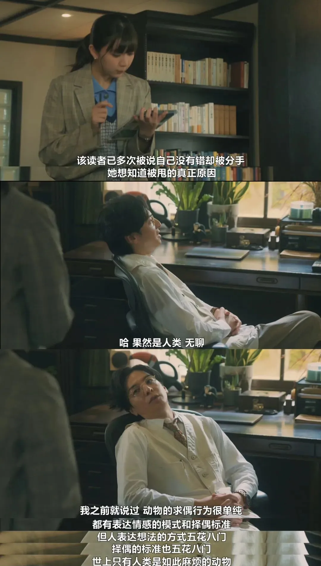 椎堂还将用"信天翁终生伴侣制“探讨忠诚,萤火虫发光求偶暗喻”信号传递失误",更多动物案例将解锁一叶的情感进展。