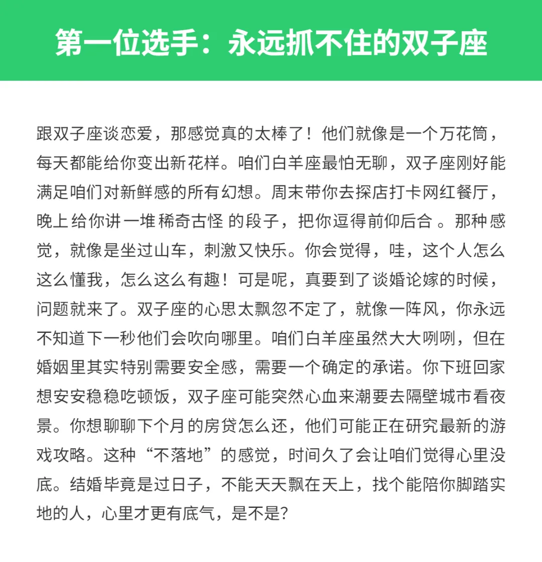 >适合白羊座恋爱但不适合结婚的星座!