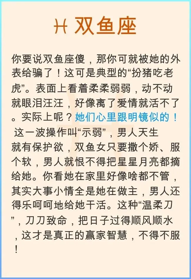 咱就说,现在这世道,谁还没听过“恋爱脑”这个词儿?好像一谈感情,人就得傻三分似的。尤其是咱们身边那些姐妹,看着对老公、对男朋友百依百顺,甚至有点“傻白甜”,大家都替她瞎操心,生怕她吃亏。但你仔细品品,有些人那是真傻,有些人那是“大智若愚”!表面上看着是她在围着男人转,实际上家里的财政大权、话语权,甚至男人的心,早就被她捏得死死的。今天咱就来盘点一下,哪几个星座看着像恋爱脑,其实是妥妥的高端玩家!