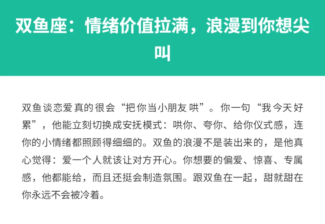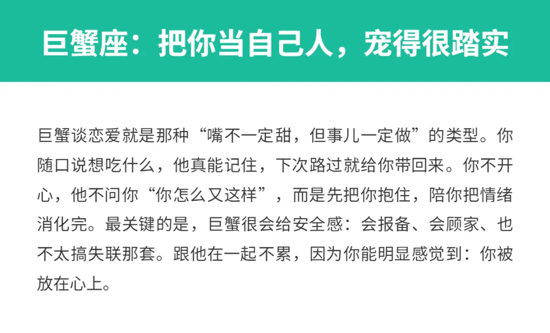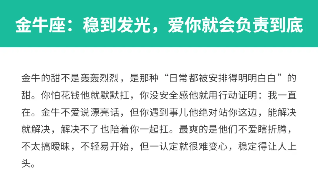 谈恋爱这事儿吧,最怕的不是吵架,是你一边付出一边猜:他到底爱不爱我?信息回得慢你就心慌,情绪上头你又觉得自己太作。说白了,很多苦不是爱情本身给的,是对方的“不确定”和“忽冷忽热”给的。那有没有那种一谈就省心的?有,而且还挺明显:跟这三大星座恋爱,基本不玩套路,甜得很稳定。你要的安全感、被在乎、被照顾,他们都能给到位。