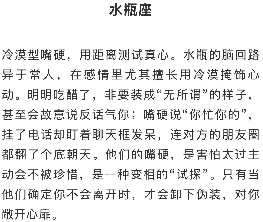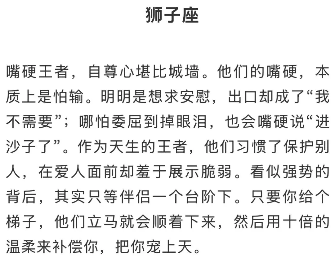 在感情的世界里,总有那么一类人,他们的爱意从来不会直白地挂在嘴边。比起甜言蜜语,他们更擅长用“反向表达”来掩饰真心。明明心里急得像热锅上的蚂蚁,脸上却还要装作云淡风轻;明明委屈得快要掉眼泪,嘴上却还要逞强说“我没事”。这三个星座就是典型的“嘴硬心软”代表,他们的爱藏在口是心非里,倔得让人心疼,也真得让人动容。