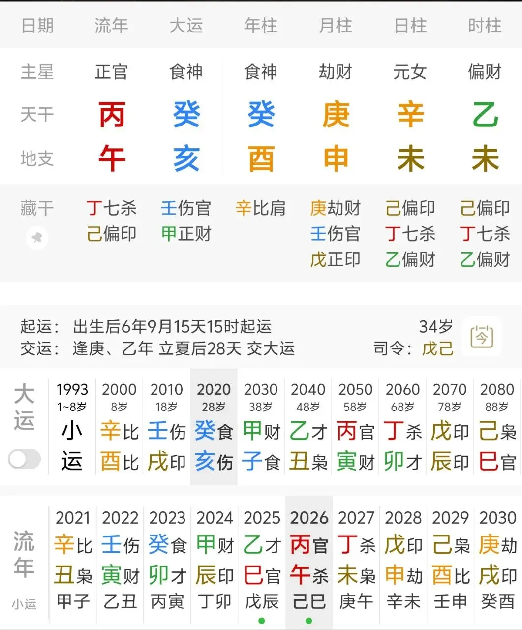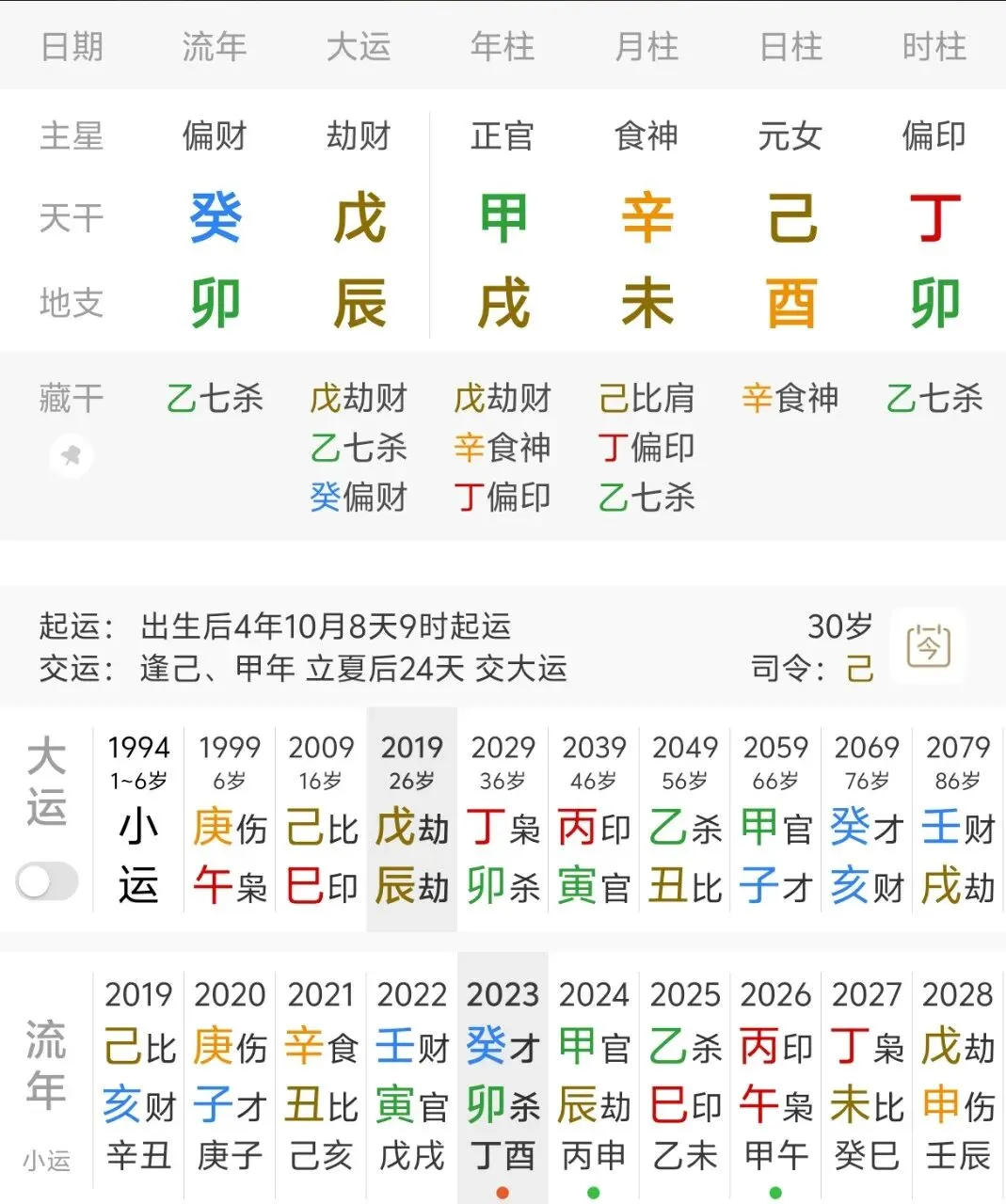 换到癸亥大运,细看的话只能2023能谈的到。(亥卯未)但是想成婚还是不可能。