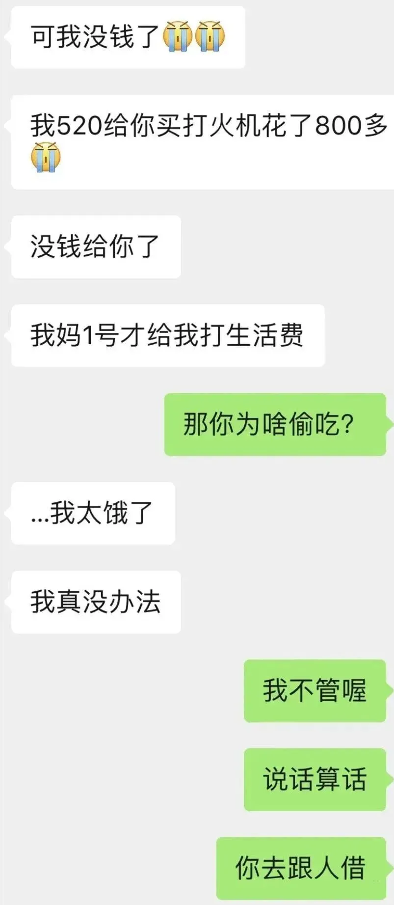 我真的不是缺这个800,500的,平时我们一起在学校食堂吃饭刷的都是我的饭卡。平时过节我也给她发红包祝她节日快乐。