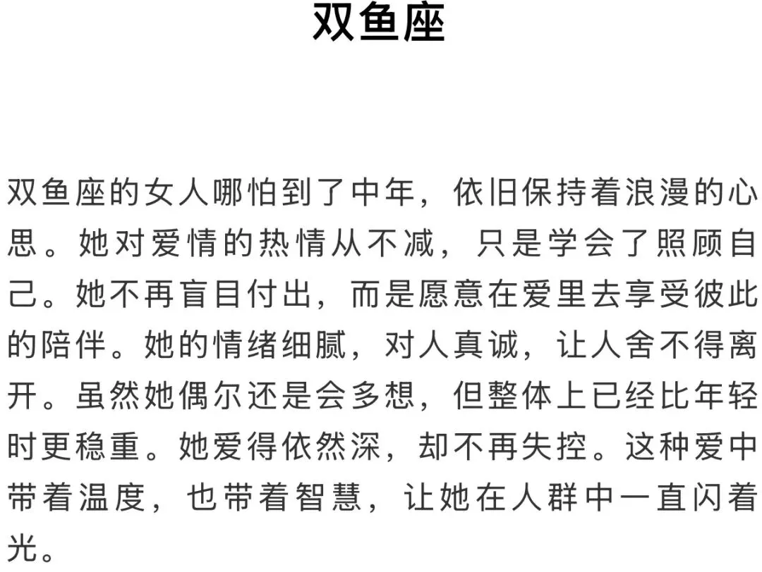 人到中年,有人越来越理性,也有人依旧在爱情里充满热情。那些真正懂得生活的女人,并不是不顾一切,而是即使历经岁月,仍愿意相信爱情的美好。她们有自己的底气,也有自己的节奏。恋爱时能让人感到被重视,被理解;分开时,也能体面收场。这三大星座女,就是那种在人生下半场依旧能保持恋爱勇气的人。
