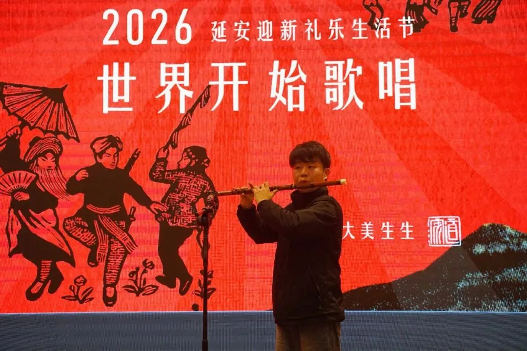 今天是2025年的最后一天!晚上联欢会来了很多老师与我们一起跨年,充满欢乐的延安礼乐生活节!用文艺展演的方式,体会到了陕北人民的传统快乐。同时,户外有个跨年音乐节,放的都是现代的流行歌曲。看着窗外很热闹,但丝毫不影响我们,我们该干什么干什么。我也不想去看热闹,太刺耳了,听得心里震震的,不舒服。回头看着长者、老师们的笑容,这才是发自内心的。文艺,点燃了所有人的心,是精神满满的,充满了风情。人与乐合了,就真的有了“神”。这个礼乐“大家庭”,所有人都神采飞扬,沉浸在欢乐中。我心里莫名的感动。2026年,世界开始欢唱,唱出心中的歌!新年快乐!