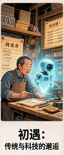 老人眯着眼,半信半疑地打量着AI,心里嘀咕:“这小子会不会太聪明,抢了我的饭碗?”AI笑得灿烂,伸出数字化的手,说:“别怕,我不是来取代你,我是来帮你变得更强大。”