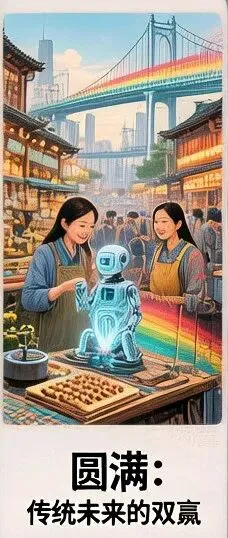 起初,老人笨拙地操作着智能设备,像个学步的孩子,常常摔个跟头。AI耐心地扶起他,调侃道:“放心,有我在,你就是最潮的‘老古董’!”渐渐地,老人发现,AI不仅带来了效率,还带来了更多的乐趣和可能。他们像一对奇妙的搭档,传统的温度与科技的冷静完美融合。