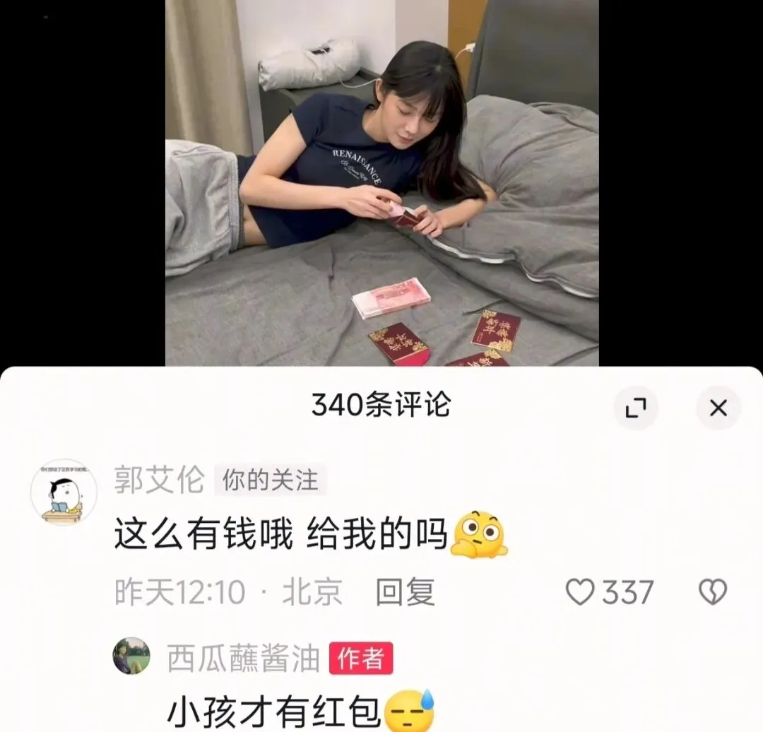 事情的起因,是近期有网友发现,郭艾伦在社交平台上,对一位ID为“西瓜蘸酱油”的女博主格外“上心”——点赞、评论从不缺席,语气还自带几分旁人没有的亲昵,一来二去,直接把吃瓜网友看懵了。