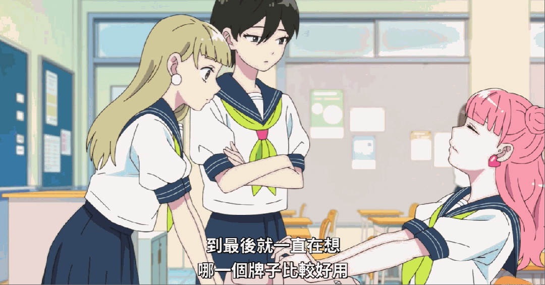 除了这对小情侣以外,他们身边的朋友各有性格,互组CP,相当有趣。看似辣妹的少女,实际上是正义感满满的好闺蜜;旁边的不良少年则是人来疯、自然熟……