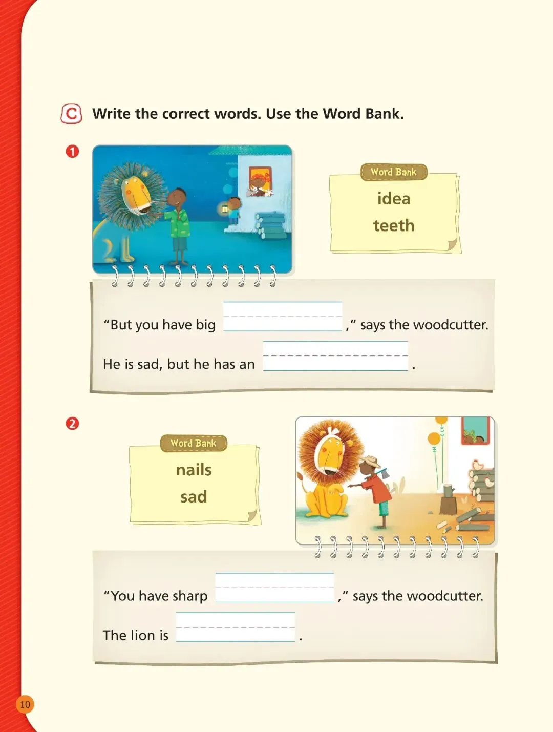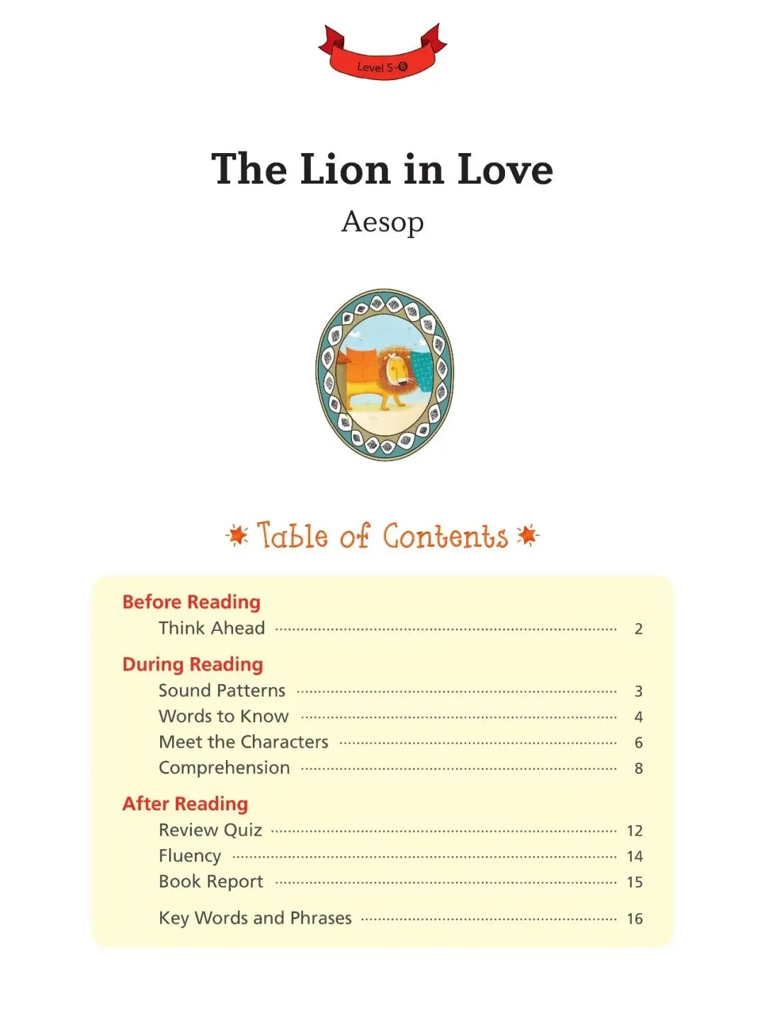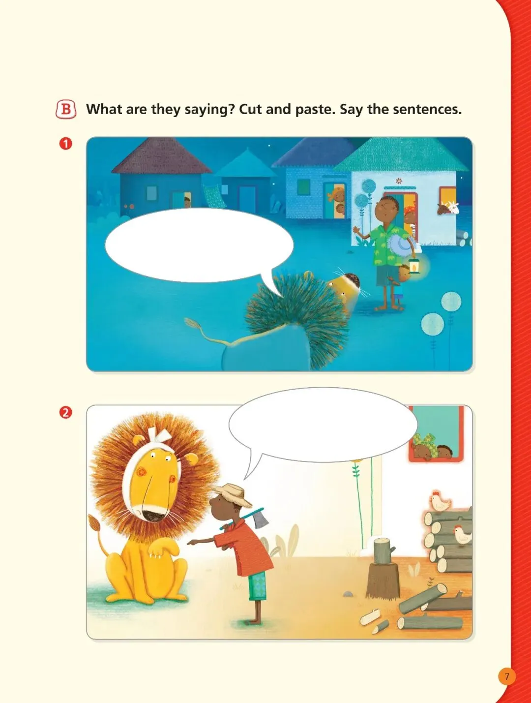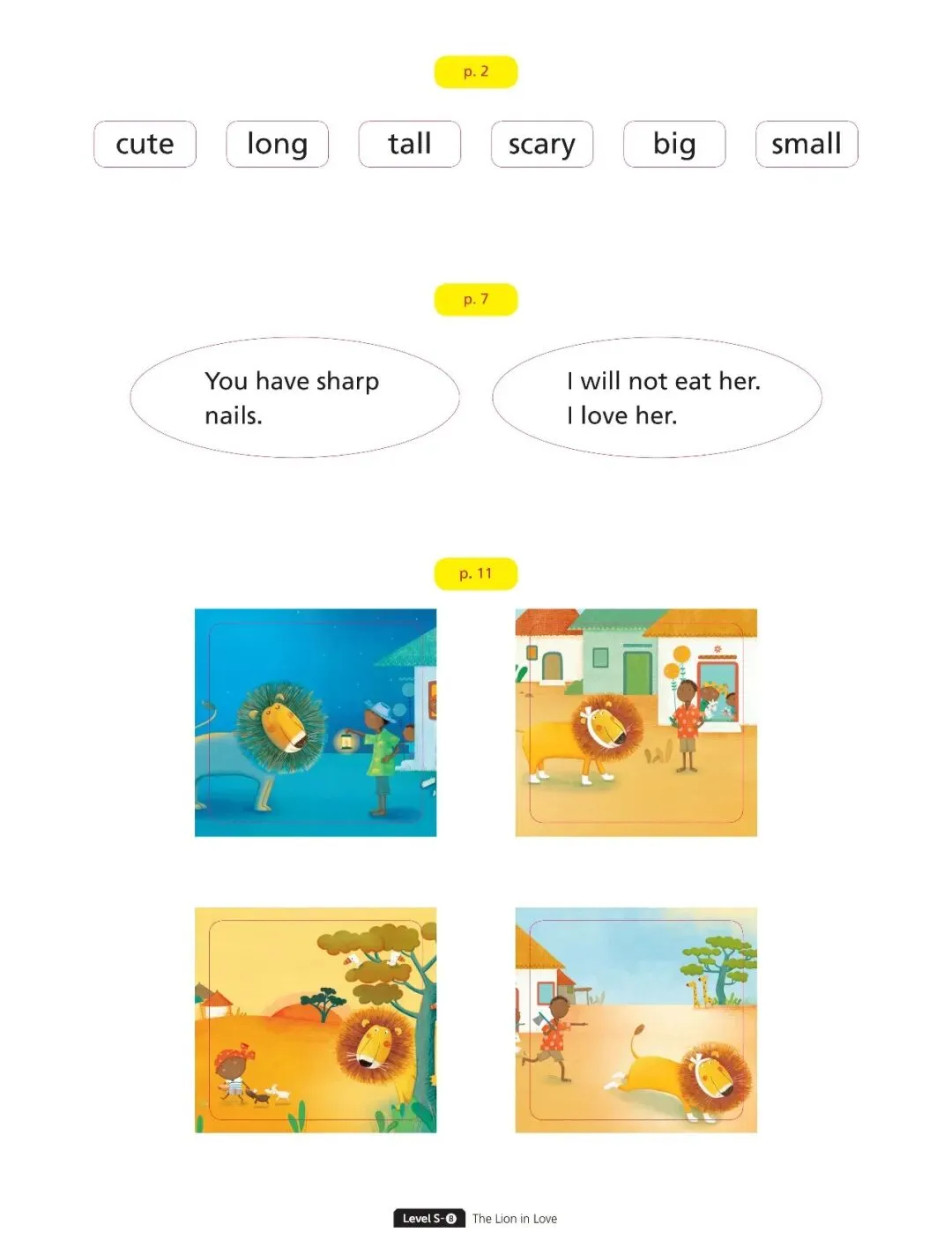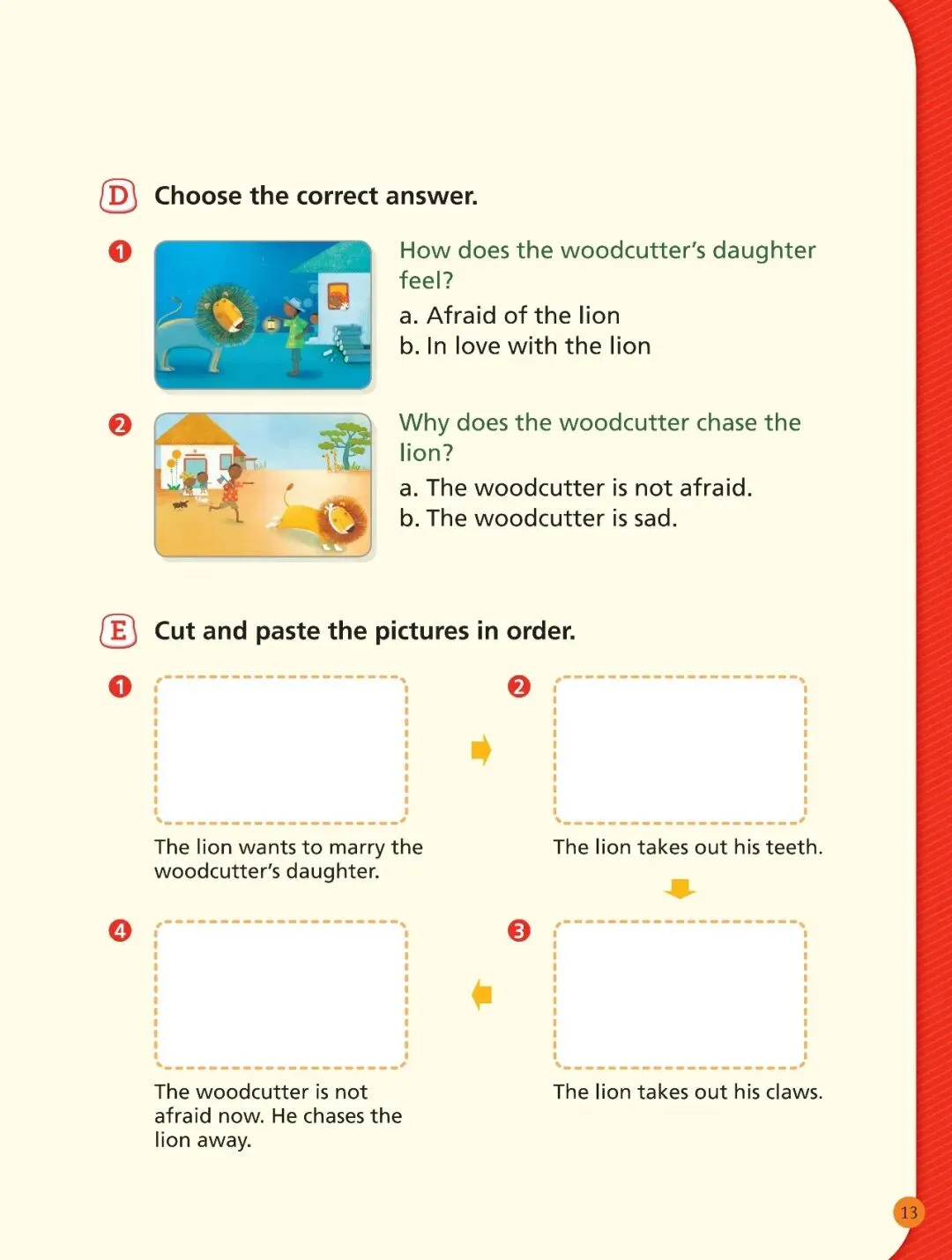 lion(狮子)、girl(女孩)、father(爸爸)、woodcutter(樵夫)、daughter(女儿)