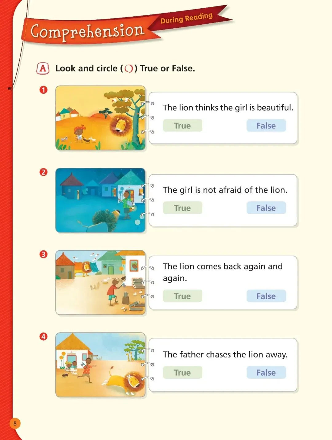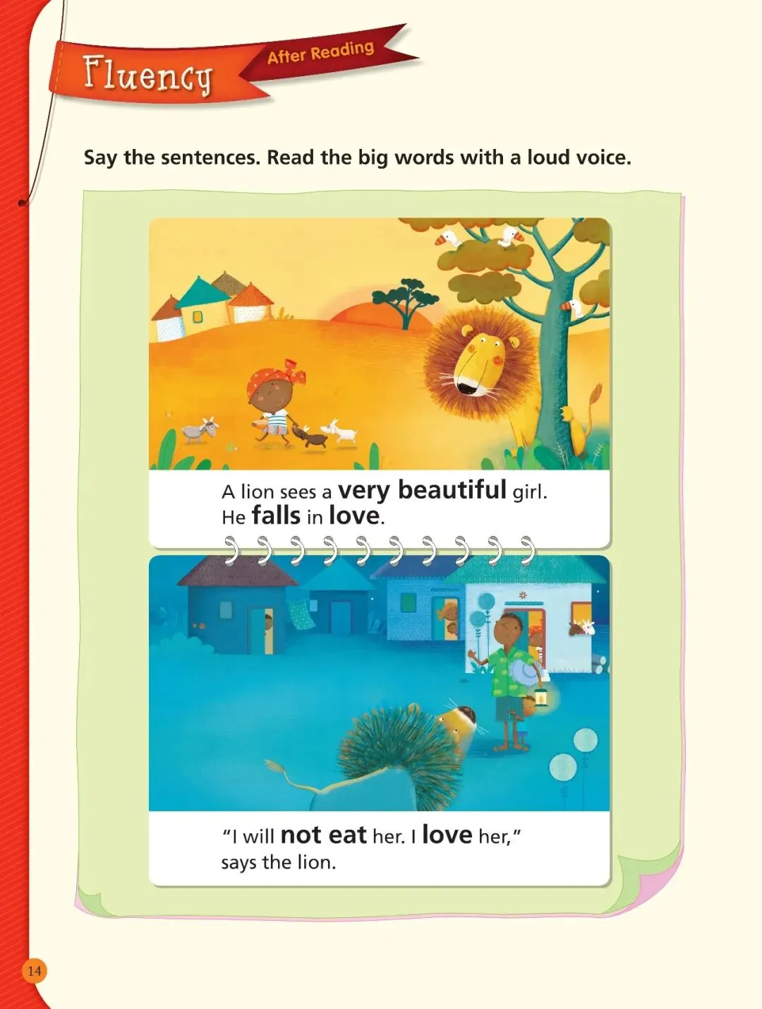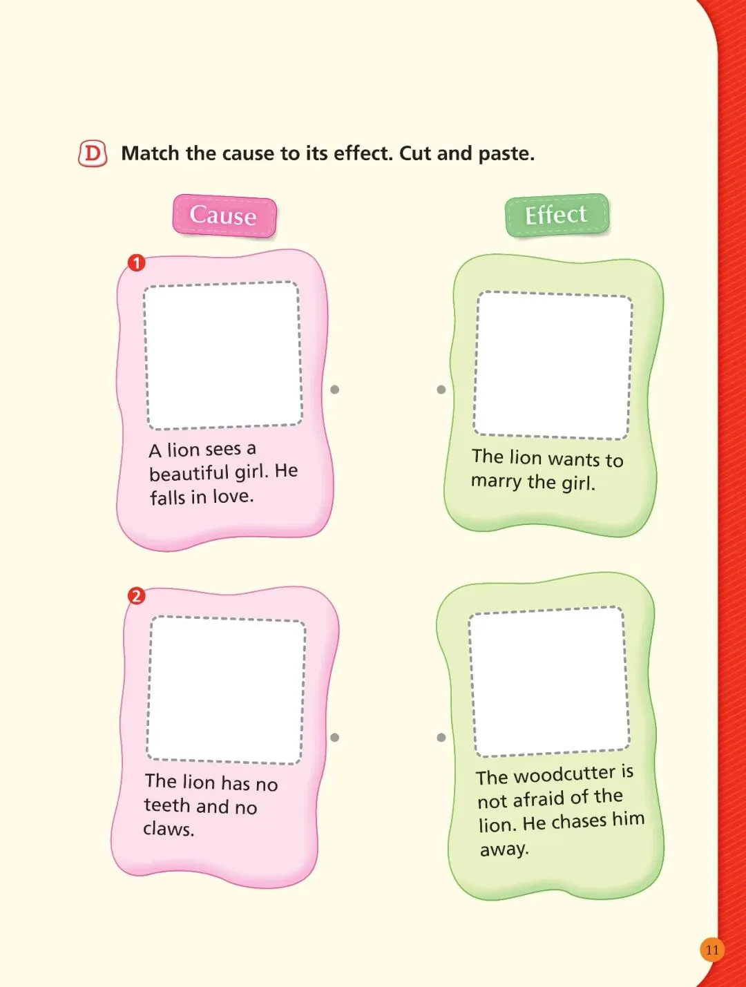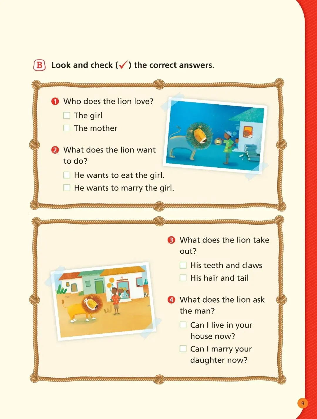 lion(狮子)、girl(女孩)、father(爸爸)、woodcutter(樵夫)、daughter(女儿)