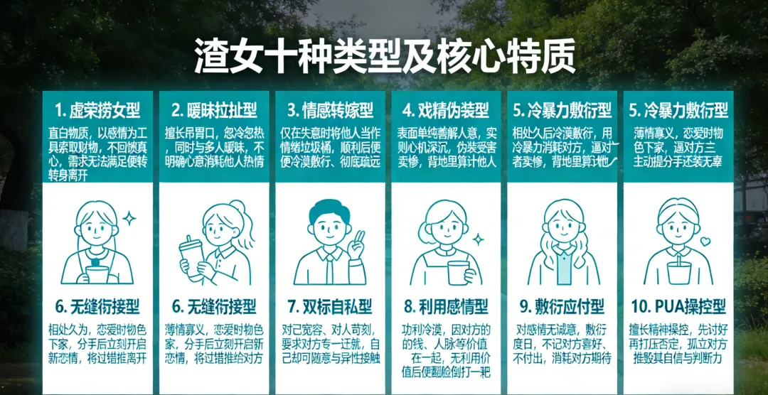 渣女核心细分类型(十种高频款,避开隐形消耗)